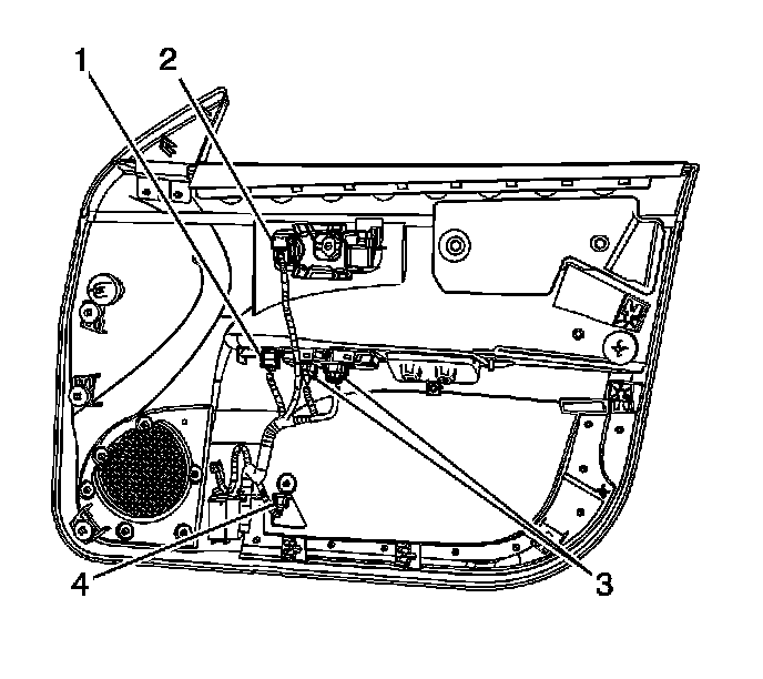 1. Remove the front door trim panel. Refer to Front Side Door Trim Panel Replacement .