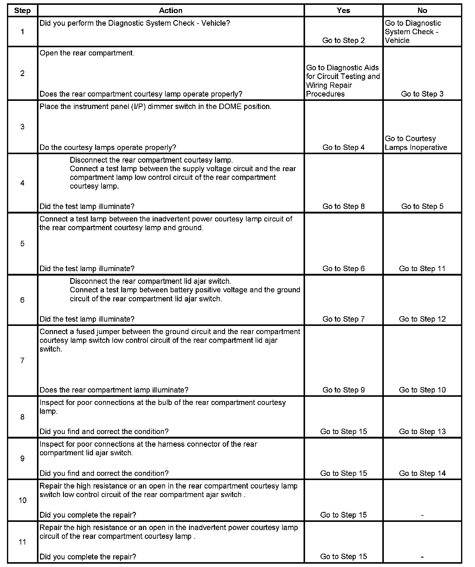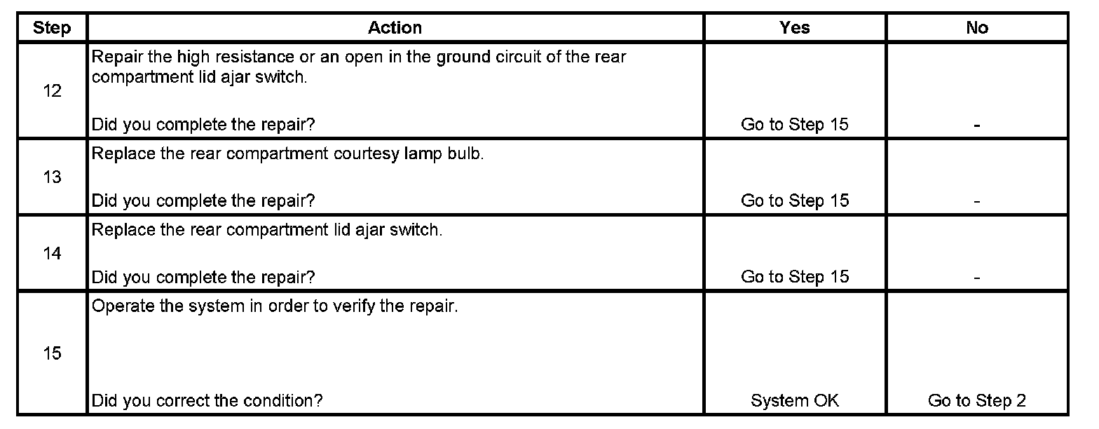 Rear Compartment Lamp(s) Inoperative