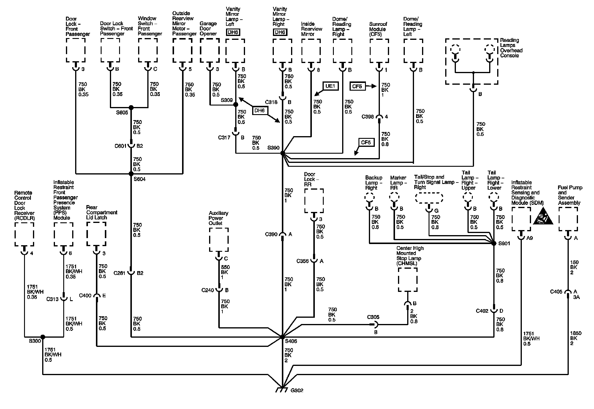 The locations for the Connectors, Grounds, Splices, and Grommets shown within these diagrams can be found via their numbers at Vehicle Locations.