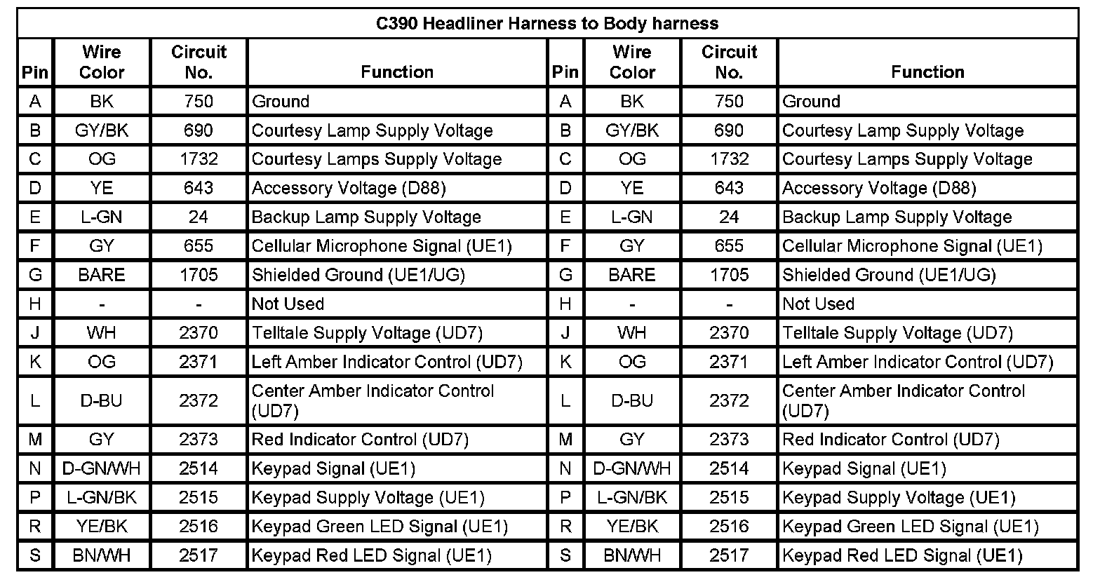 C390 Headliner Harness to Body harness: