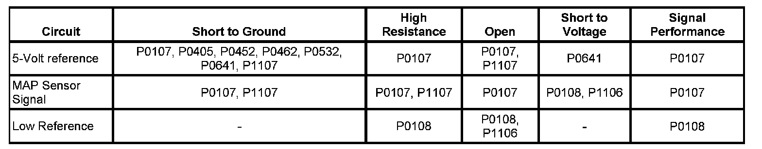 The manifold absolute pressure (MAP) sensor responds to pressure changes in the intake manifold. The pressure changes occur based on the engine load. The MAP sensor has the following circuits: