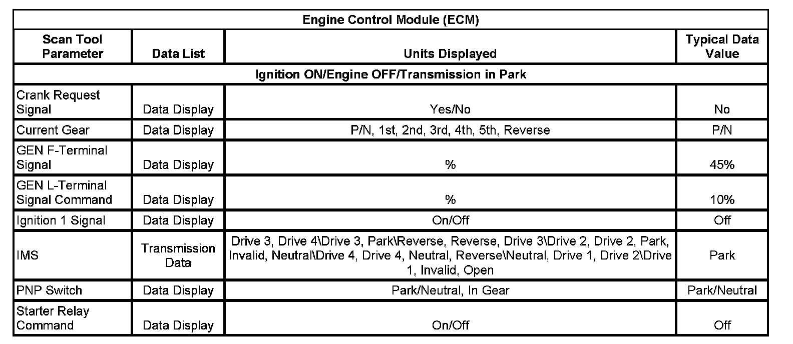Scan Tool Data List