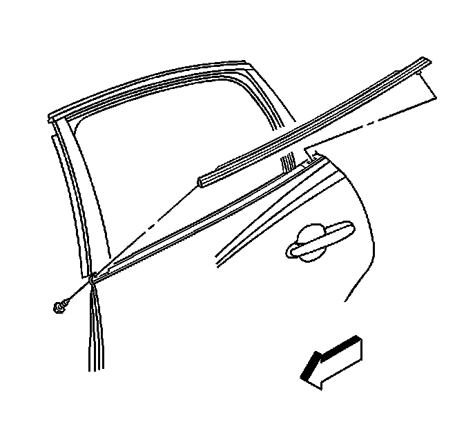 Important: Lift upward on the sealing strip at the front edge of the rear door stationary window to prevent damage to the sealing strip.