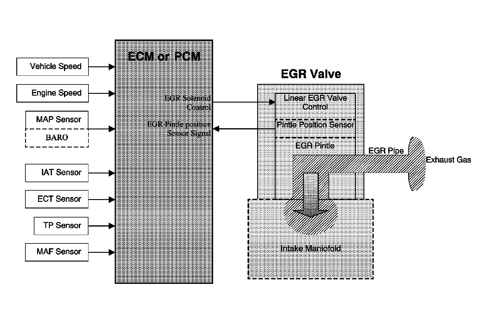 The exhaust gas recirculation (EGR) system is used to reduce the amount of nitrogen oxide (NOx) emission levels caused by combustion temperatures exceeding 816°C (1,500°F). It does this by introducing small amounts of exhaust gas back into the combustion chamber. The exhaust gas absorbs a portion of the thermal energy produced by the combustion process and decreases the combustion temperature. The EGR system will only operate under specific temperature, barometric pressure (BARO) and engine load conditions in order to prevent drivability concerns and to increase engine performance.