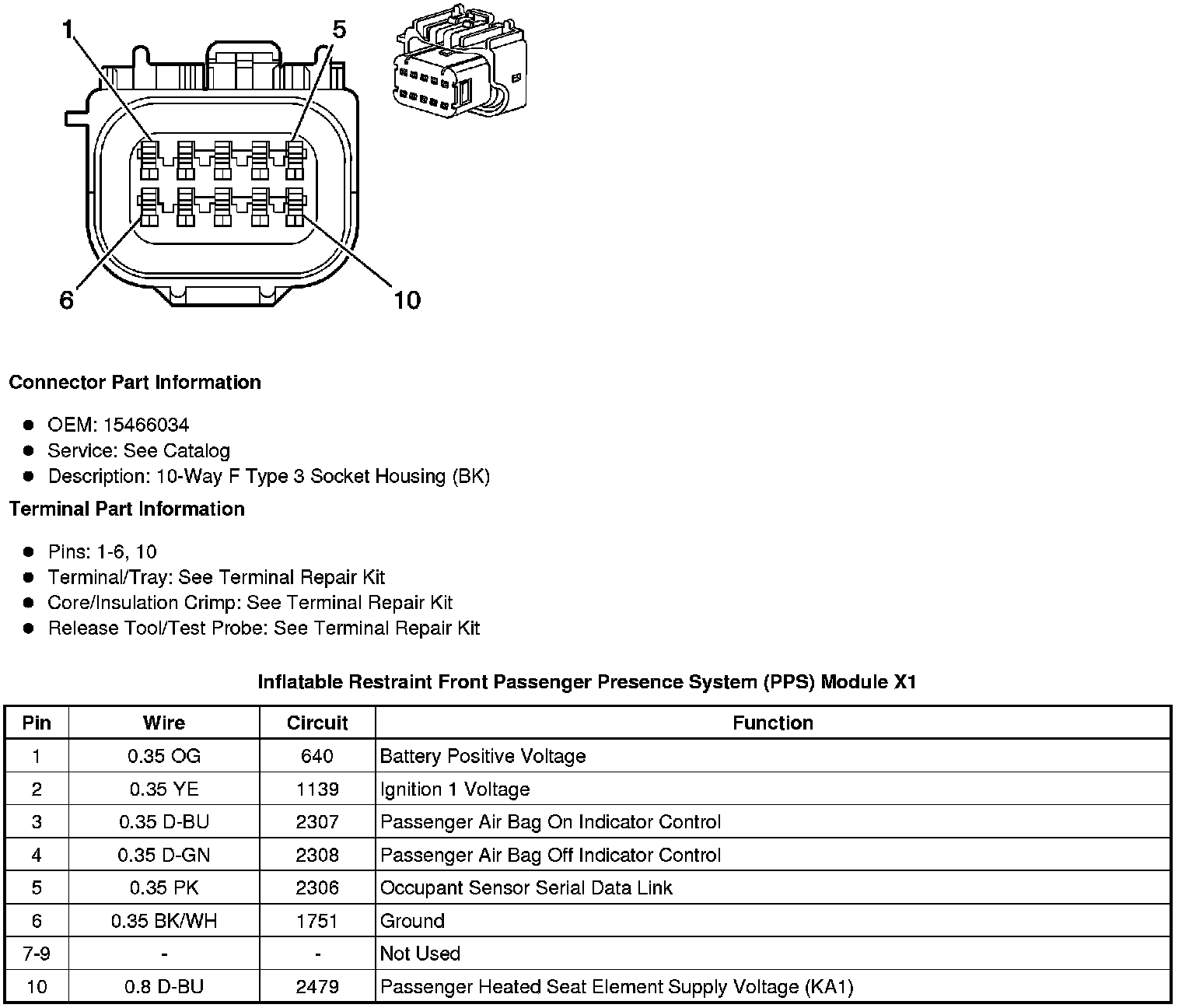 Inflatable Restraint Front Passenger Presence System (PPS) Module X1