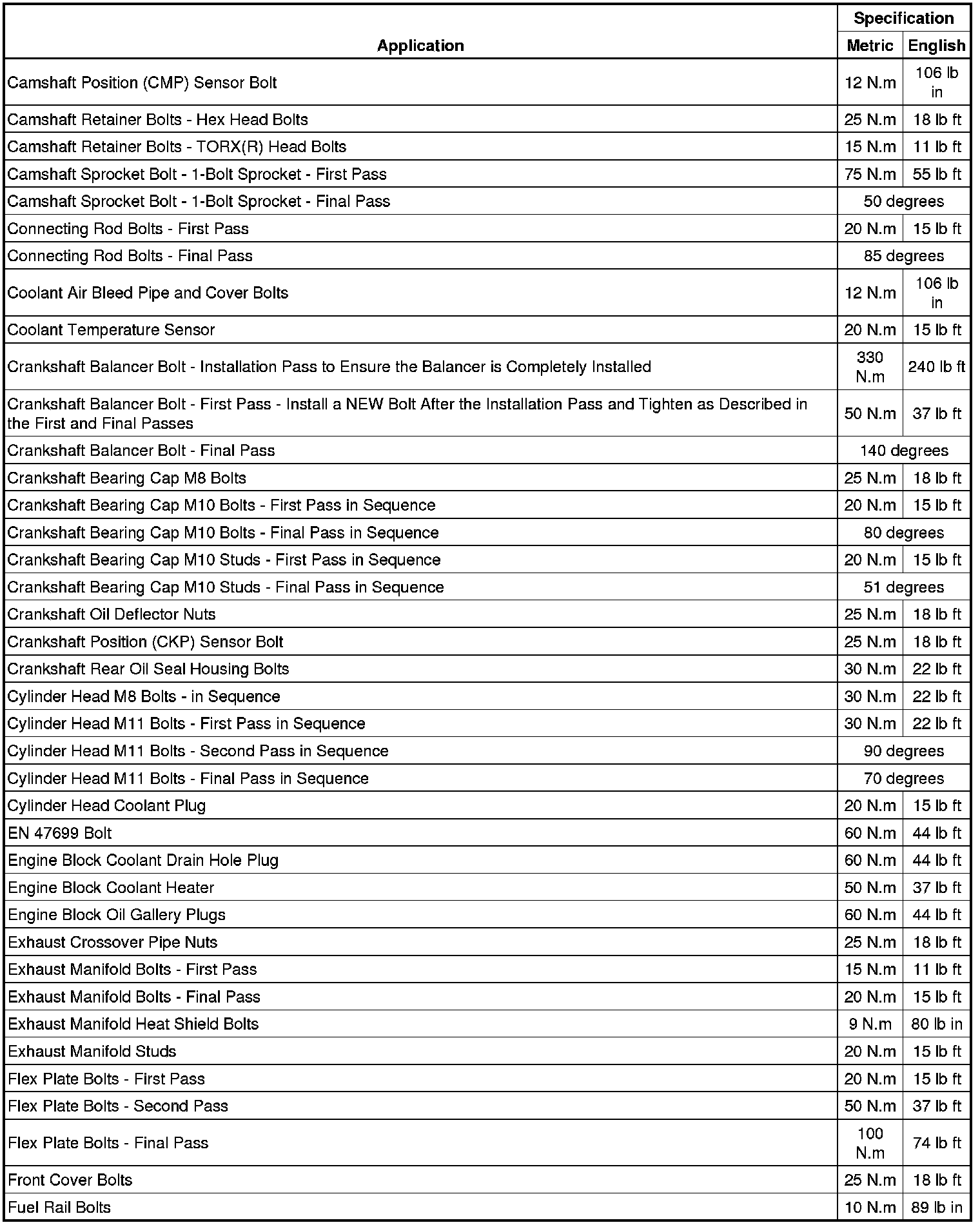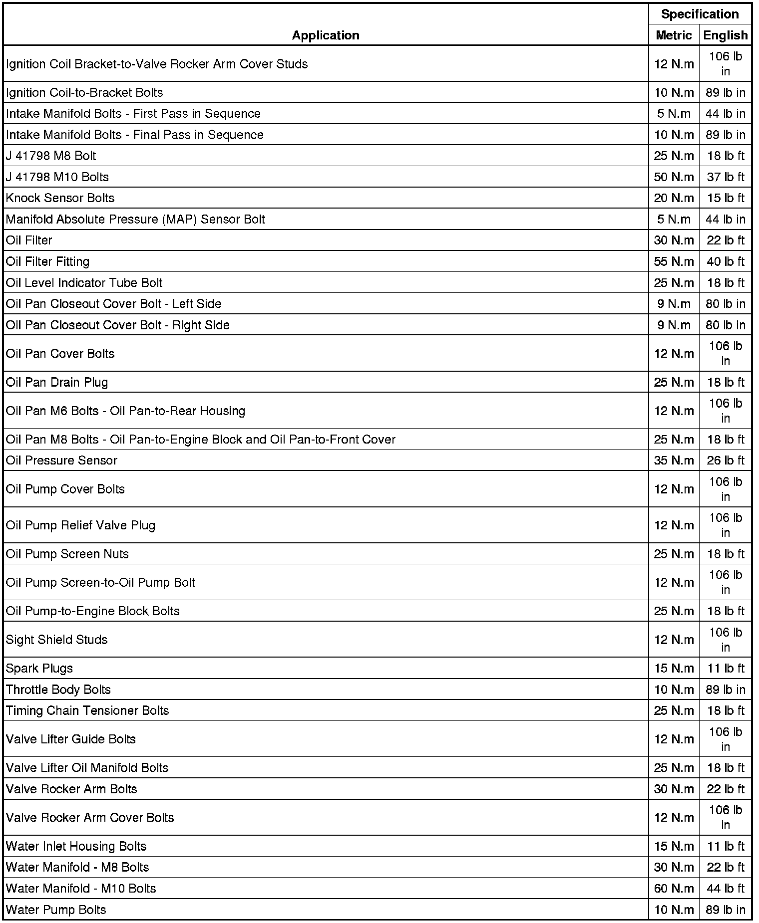 Fastener Tightening Specifications