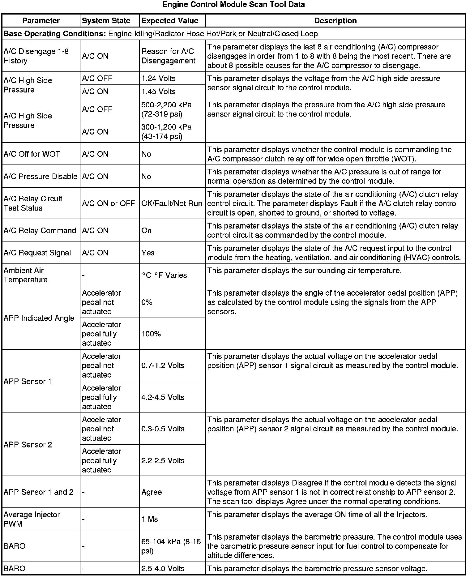 The Engine Control Module Scan Tool Data List contains all engine-related parameters that are available on the scan tool. This is a master list arranged in alphabetical order and not all the parameters listed are in every engine platform.