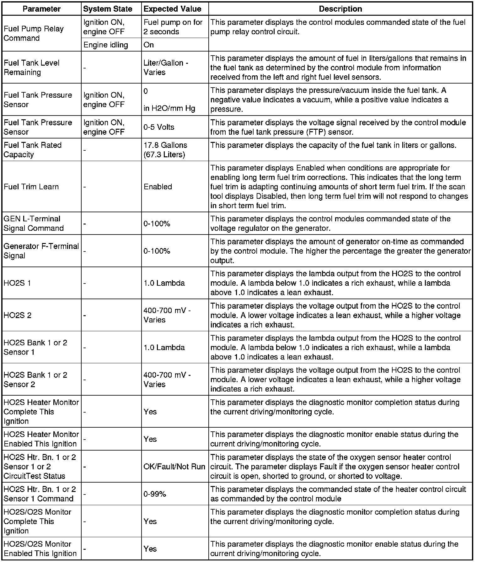 The scan tool values from a properly running engine may be used for comparison with the engine you are diagnosing. The Engine Scan Tool Data List represents values that would be seen on a normally running engine.