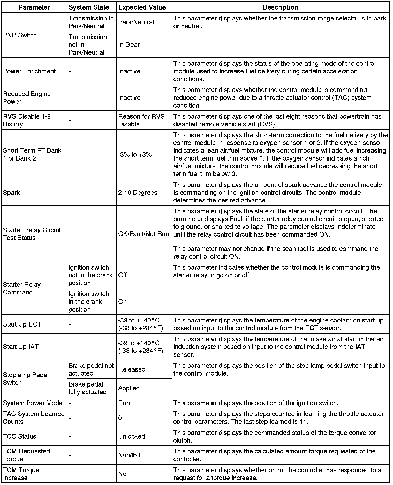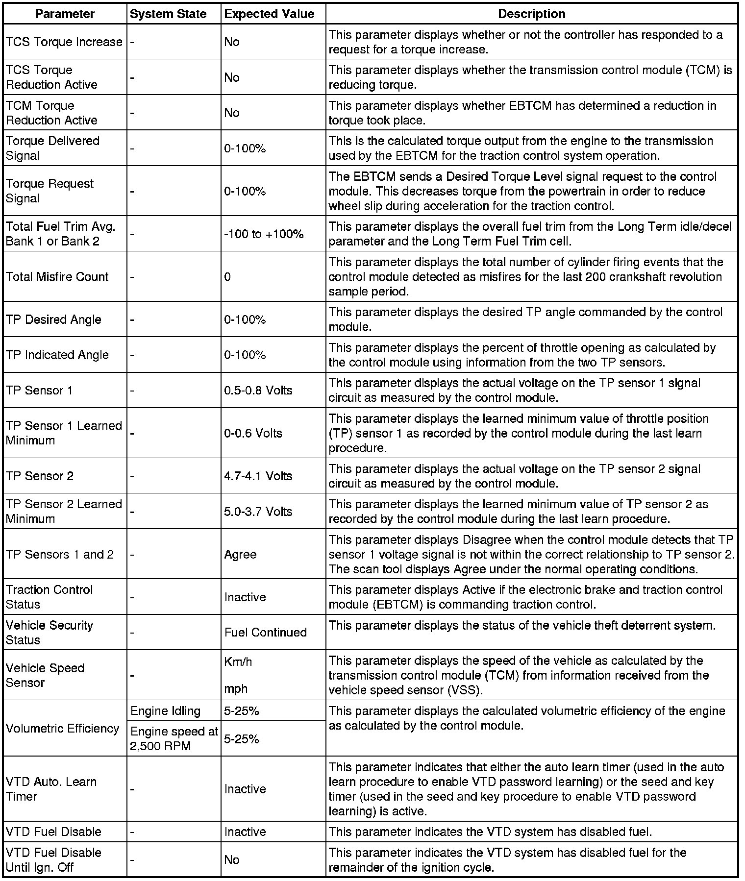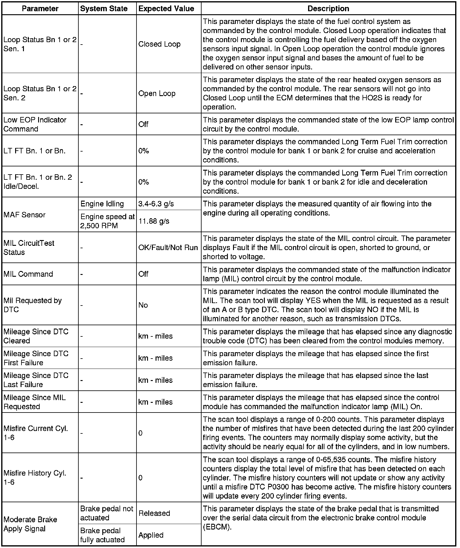 Only the parameters listed below are referenced in this service manual for use in diagnosis.