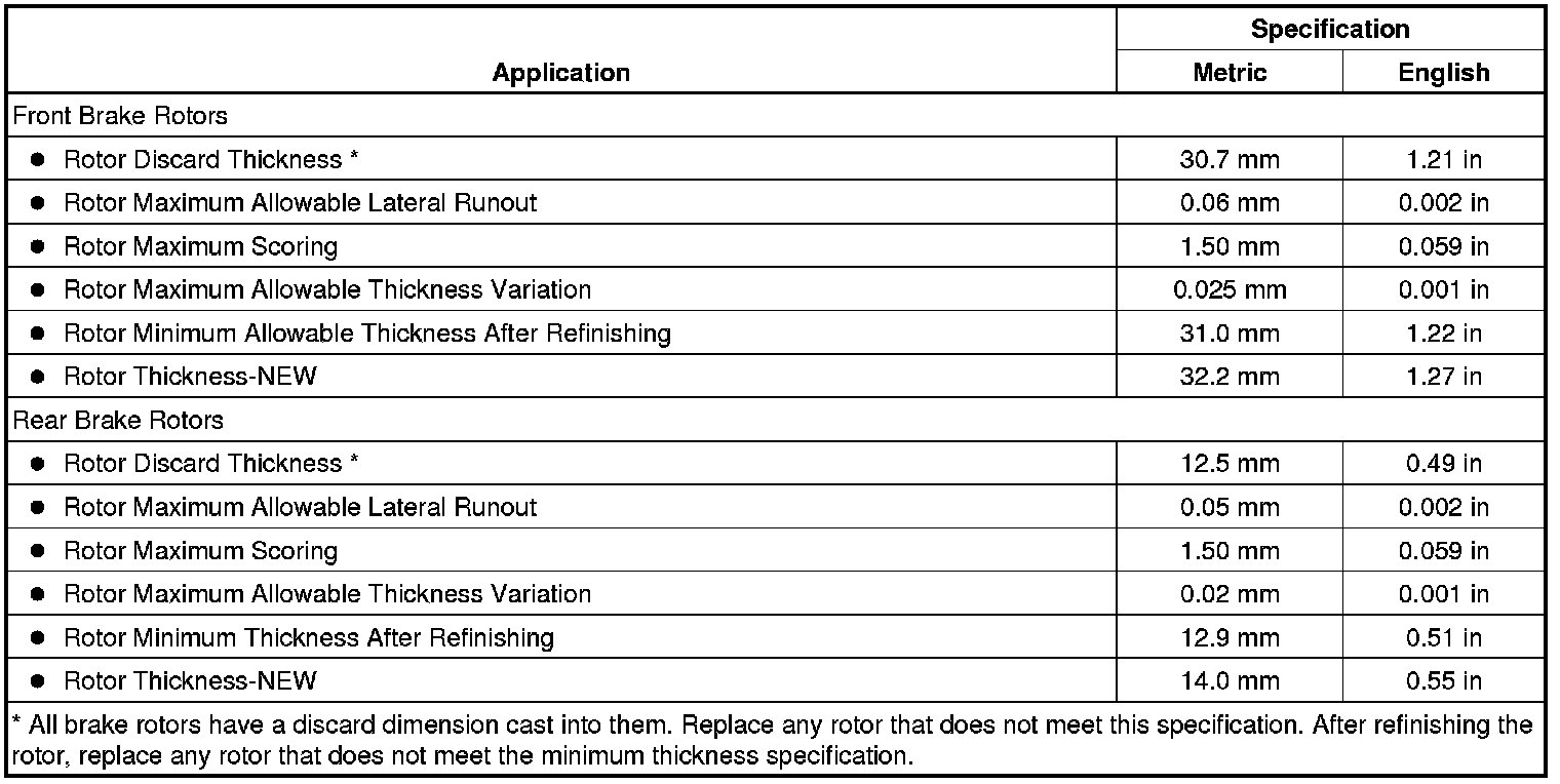 Disc Brake Component Specifications