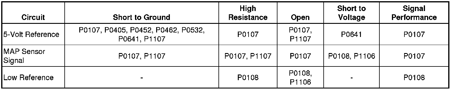 The manifold absolute pressure (MAP) sensor responds to pressure changes in the intake manifold. The pressure changes occur based on the engine load. The MAP sensor has a 5-volt reference circuit, a low reference circuit, and a signal circuit.