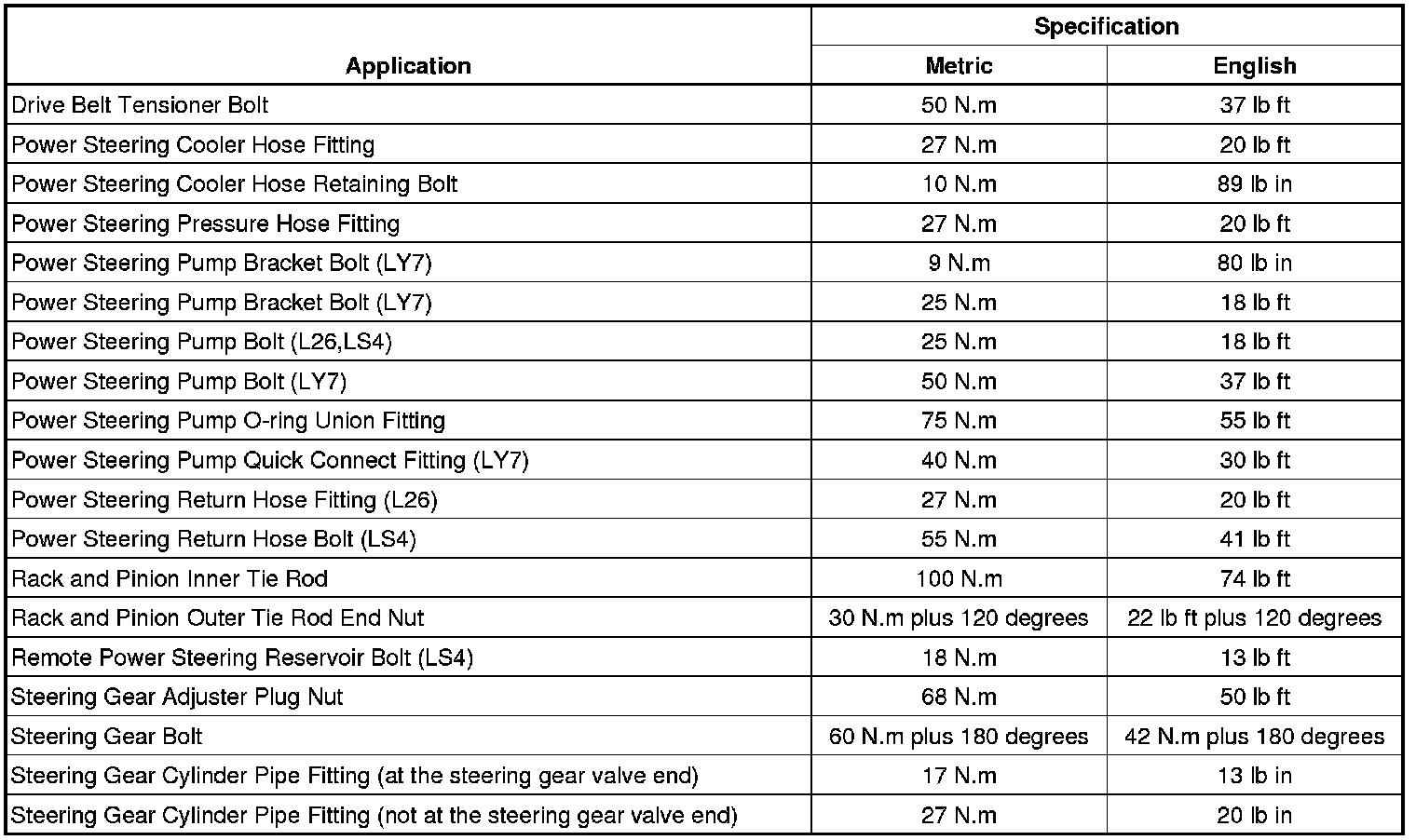 Fastener Tightening Specifications