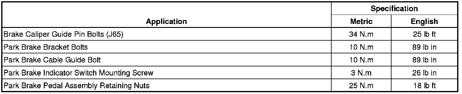 Parking Brake System: Specifications