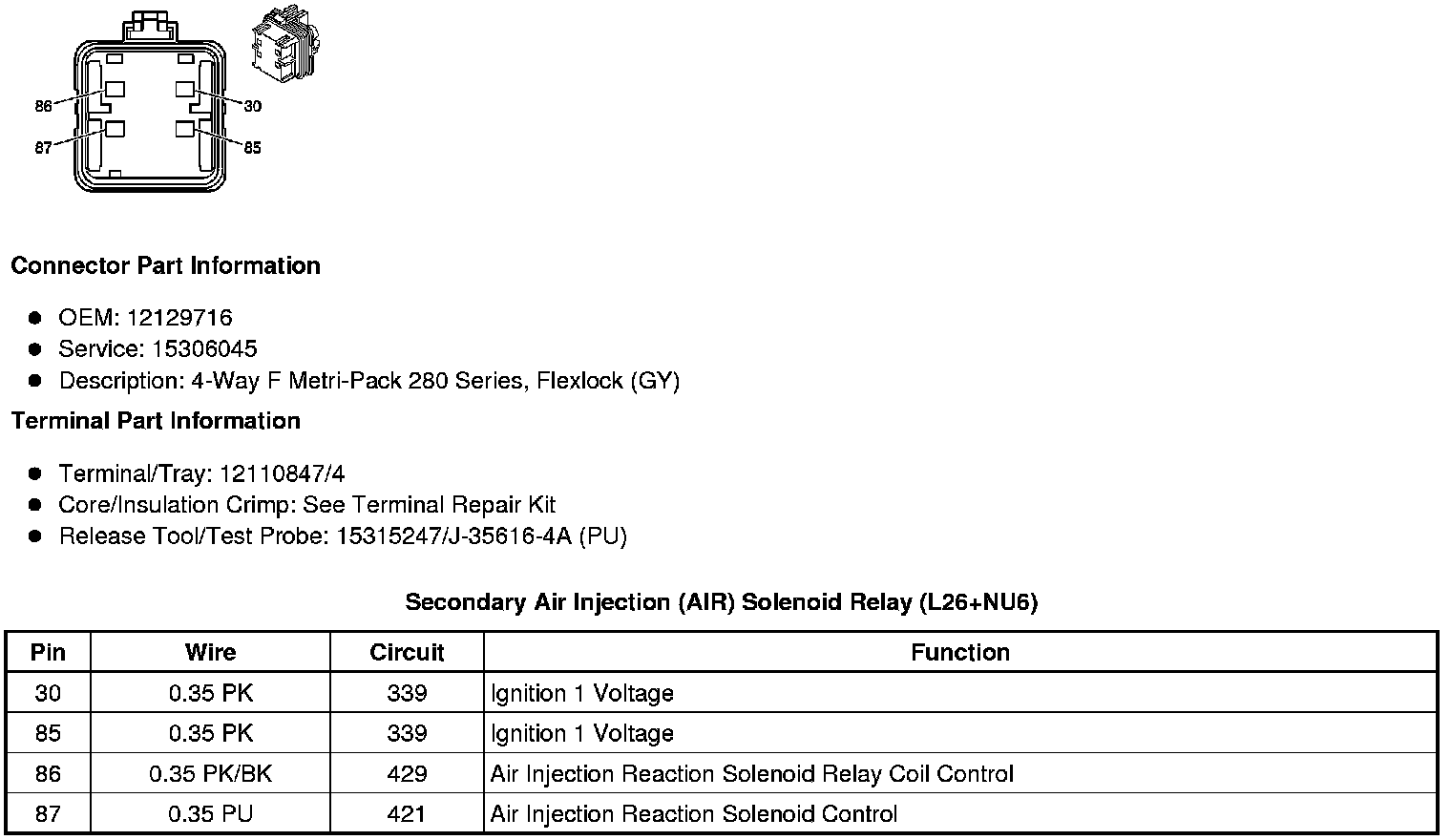 Secondary Air Injection (AIR) Solenoid Relay (L26+NU6)