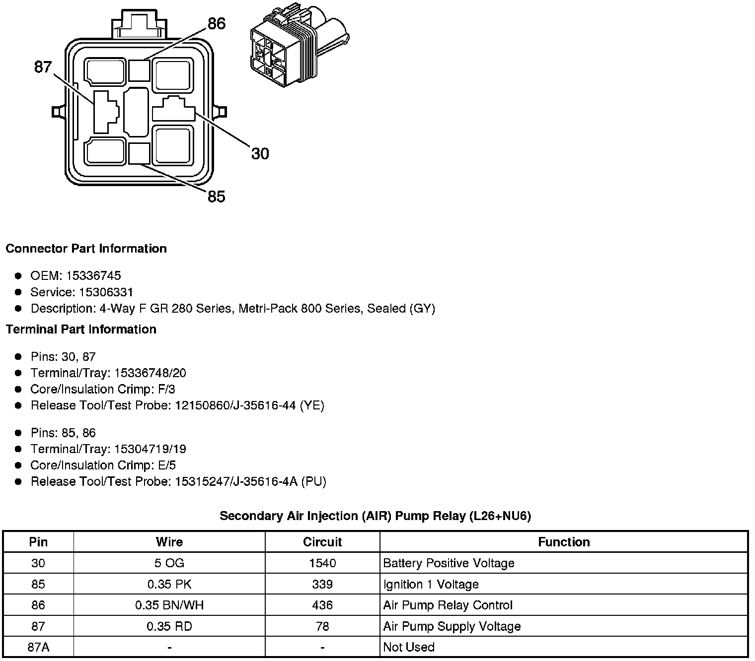 Secondary Air Injection (AIR) Pump Relay (L26+NU6)