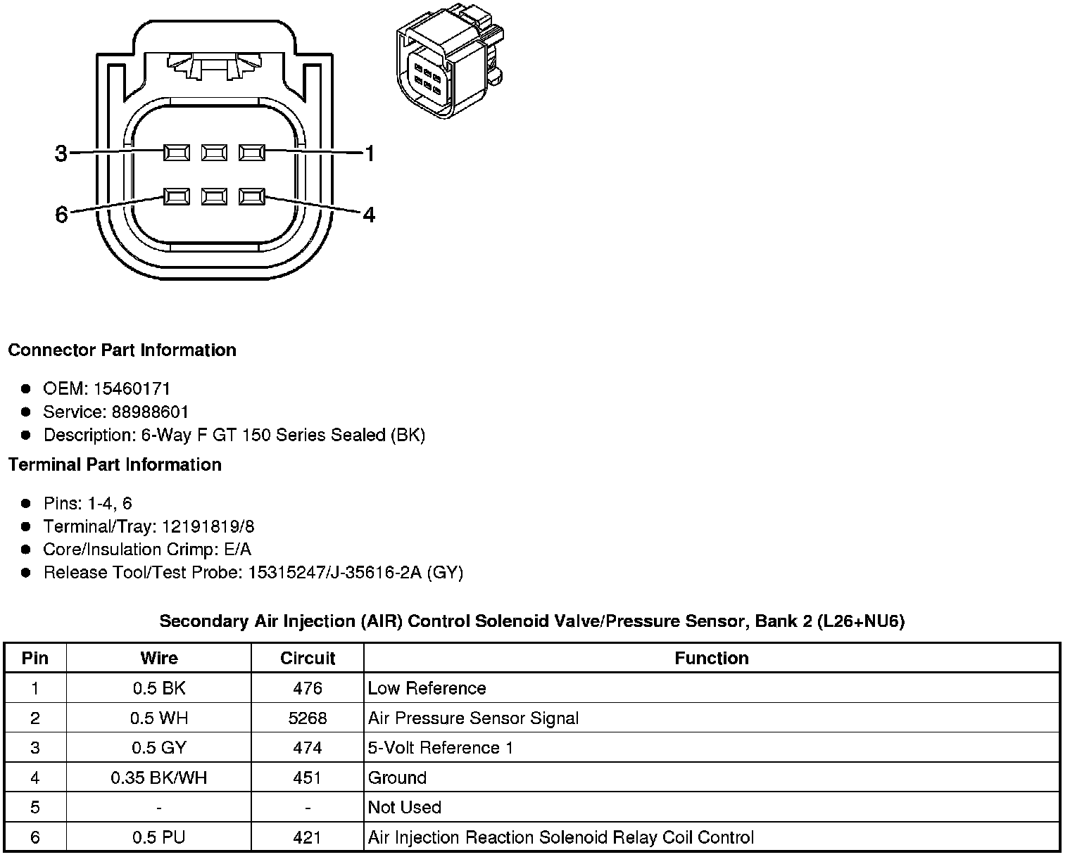 Secondary Air Injection (AIR) Control Solenoid Valve/Pressure Sensor, Bank 2 (L26+NU6)