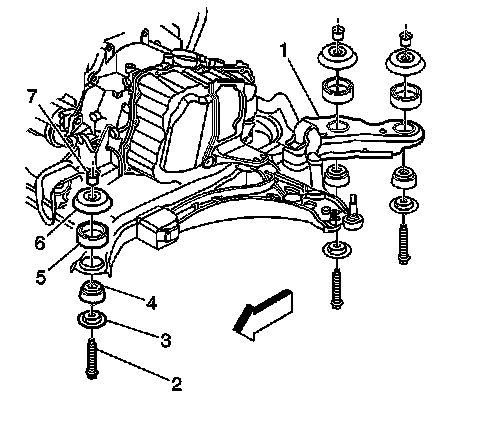 19. If the engine frame is to be replaced, remove the lower control arms. Refer to Lower Control Arm Replacement (Front Suspension) .