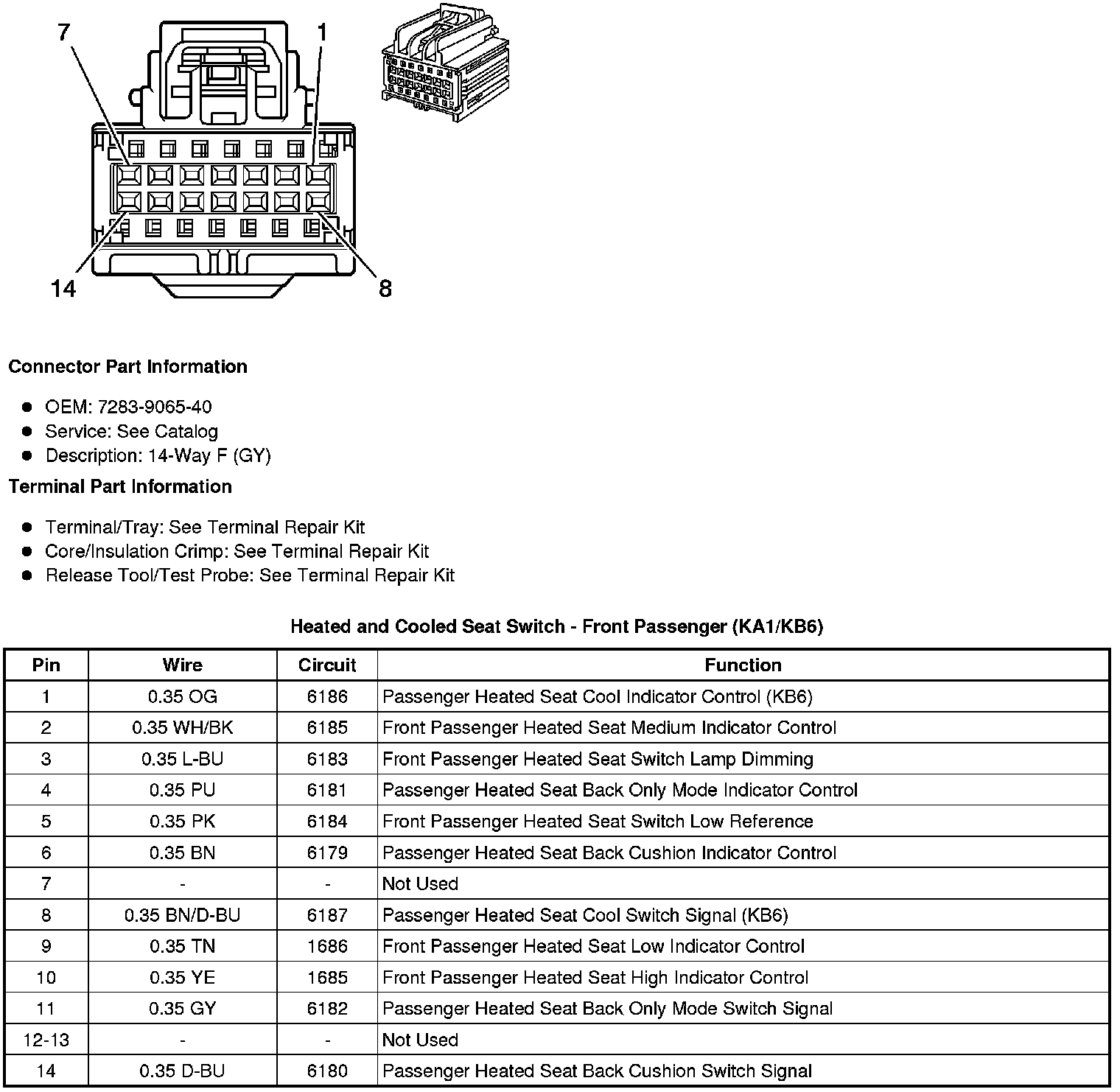 Heated and Cooled Seat Switch - Front Passenger (KA1/KB6)
