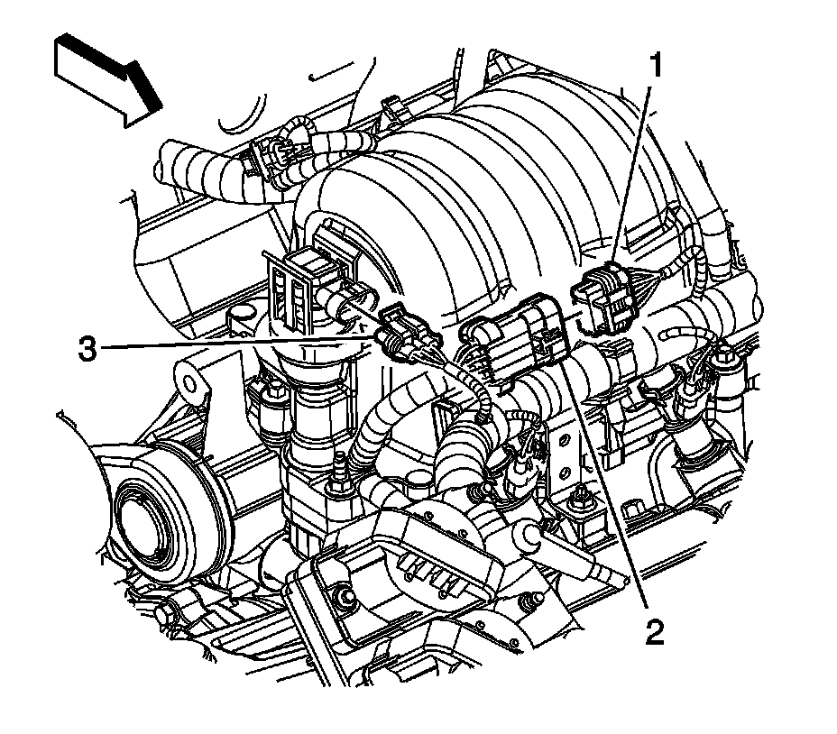2. Disconnect the engine harness electrical connector (3) from the manifold absolute pressure (MAP) sensor.