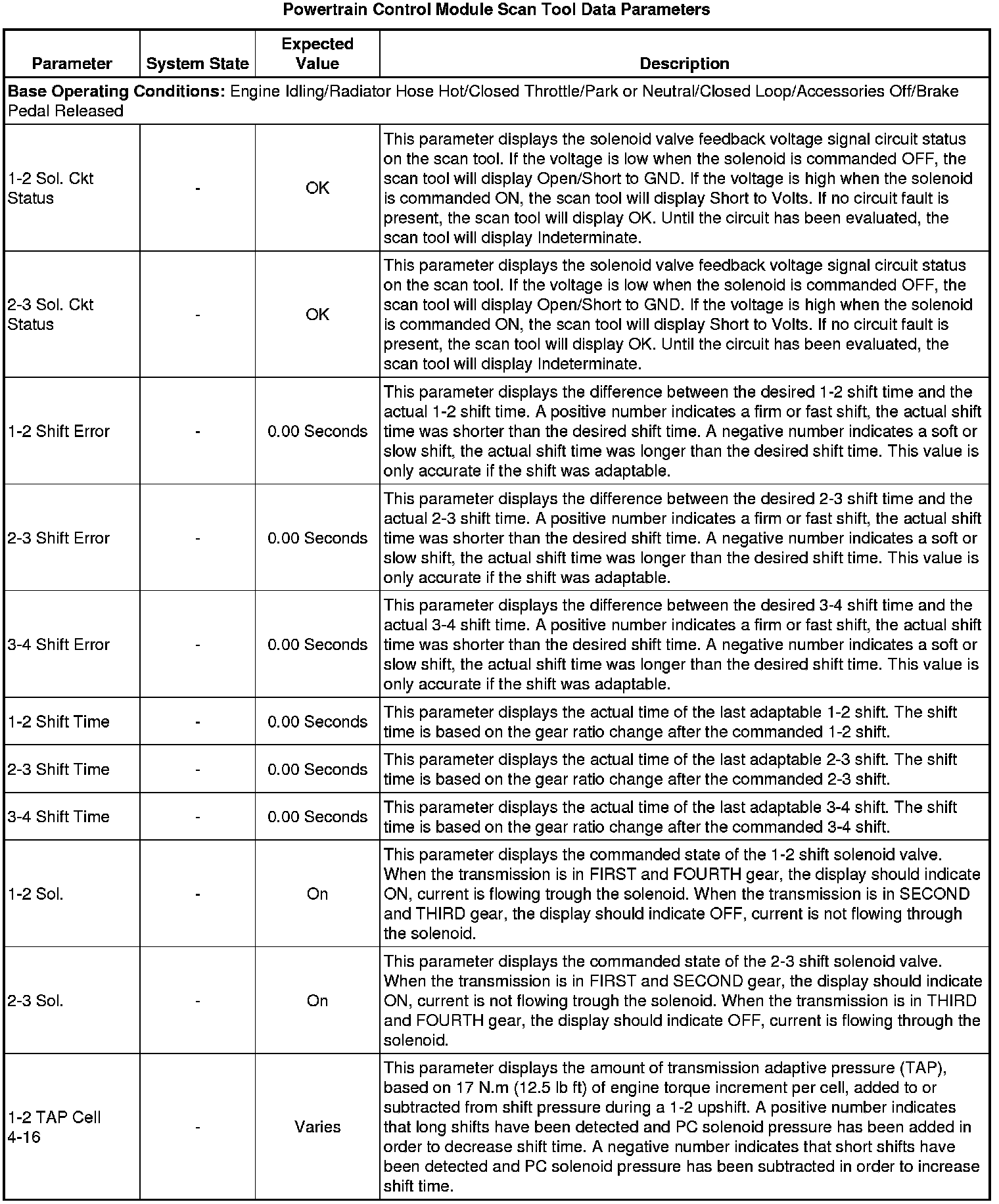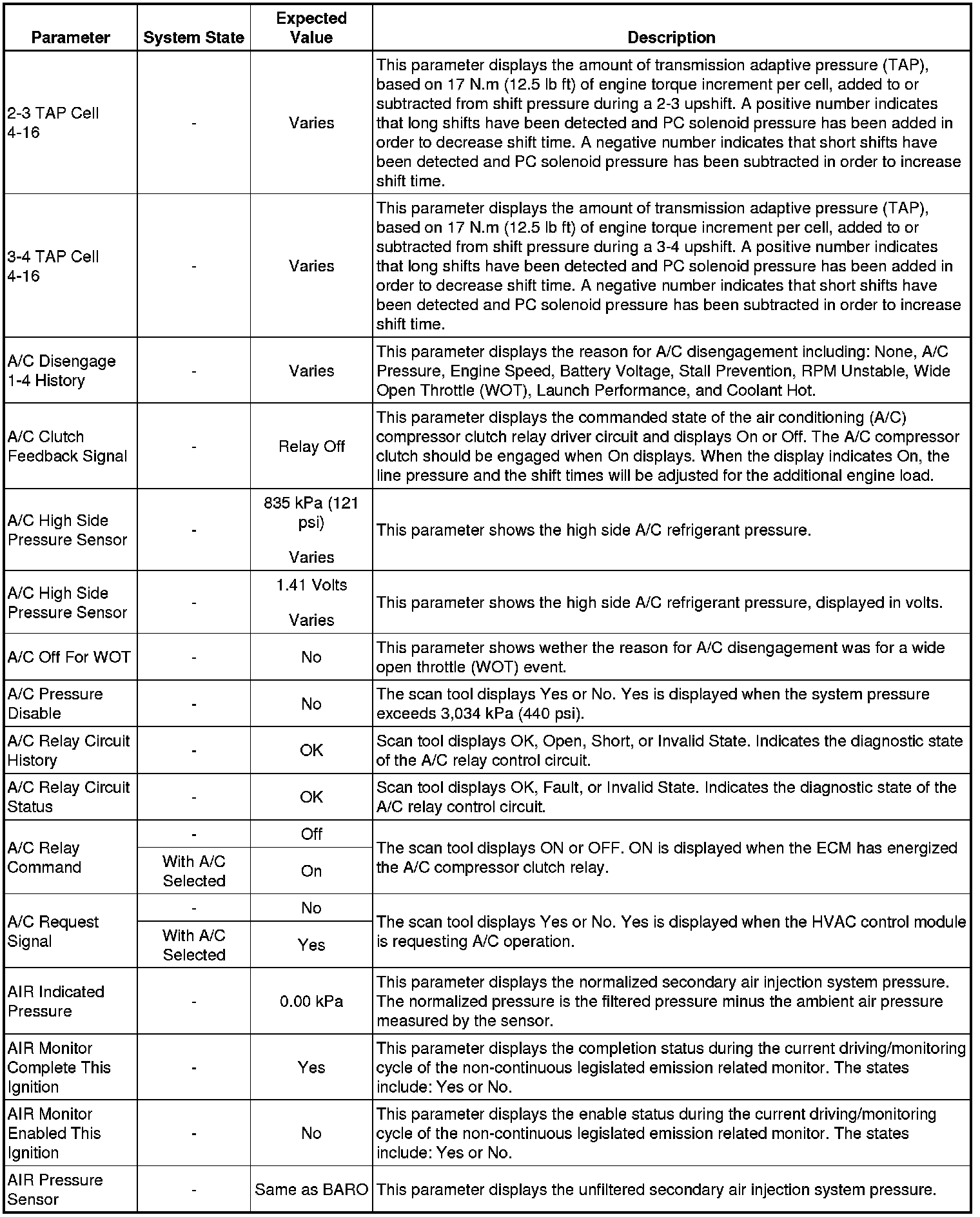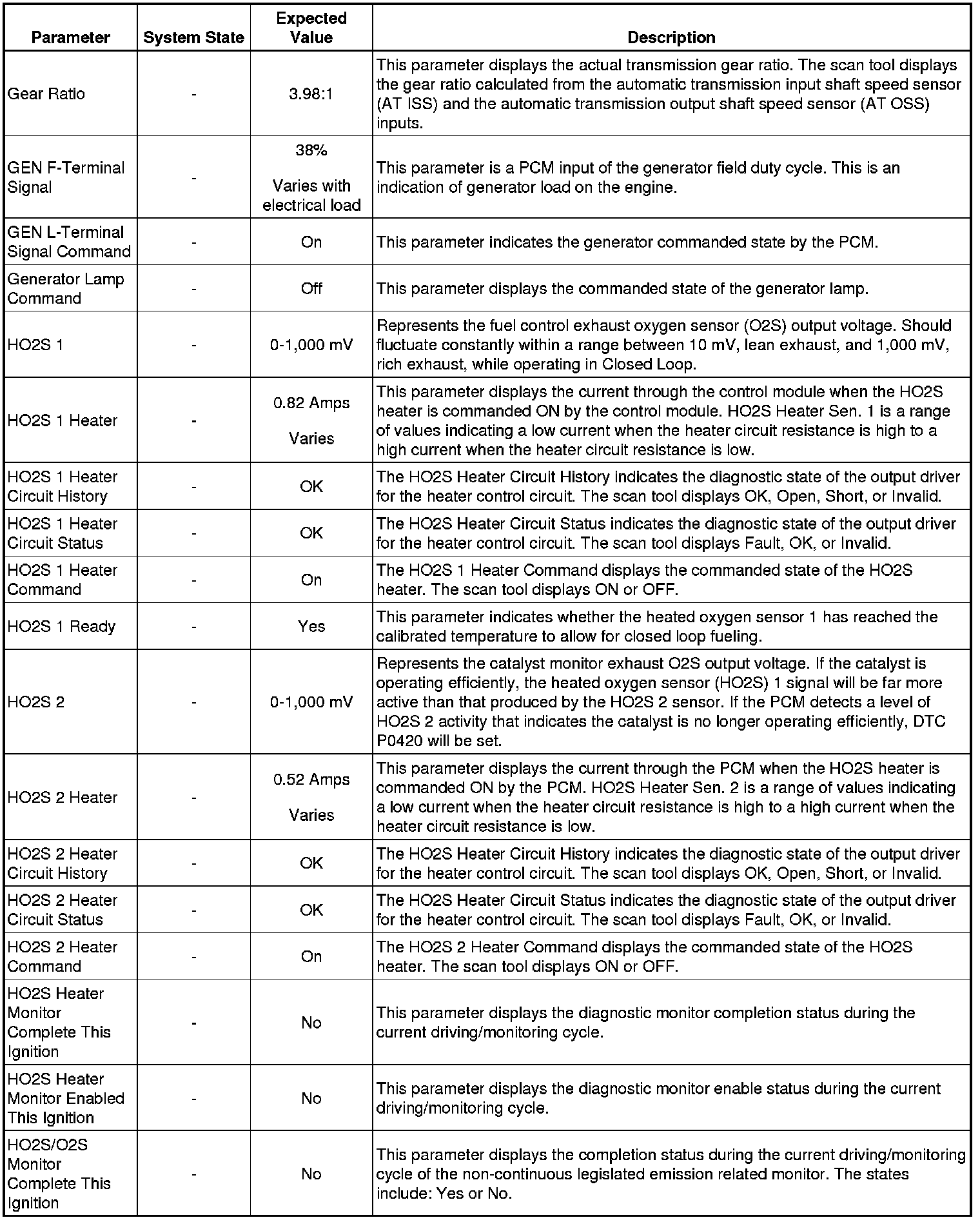 Only the parameters listed below are referenced in this service manual for use in diagnosis. If all values are within the typical range described below, Refer to for diagnosis.