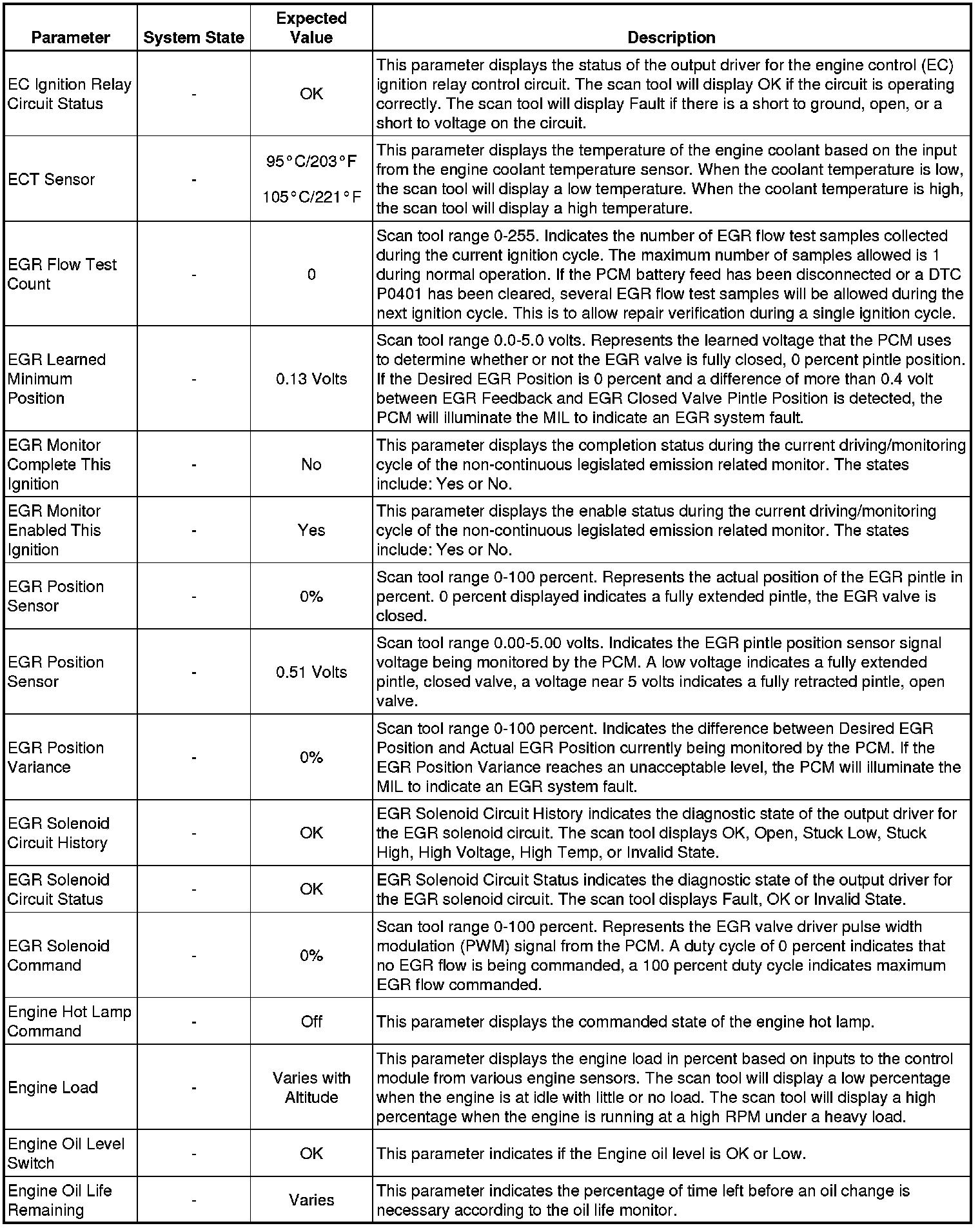 The Engine Control Module Scan Tool Data List contains all engine-related parameters that are available on the scan tool. The list is arranged in alphabetical order. A given parameter may appear in any one of the data lists, and in some cases may appear more than once, or in more than one data list in order to group certain related parameters together.