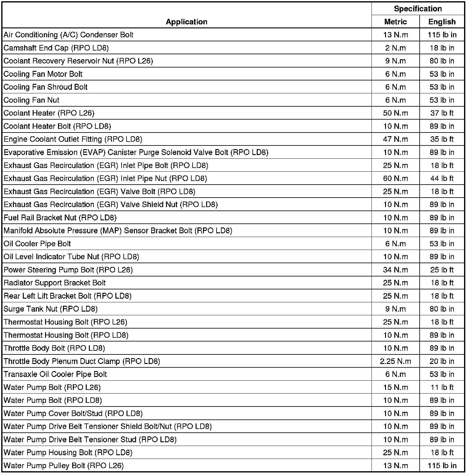 Fastener Tightening Specifications