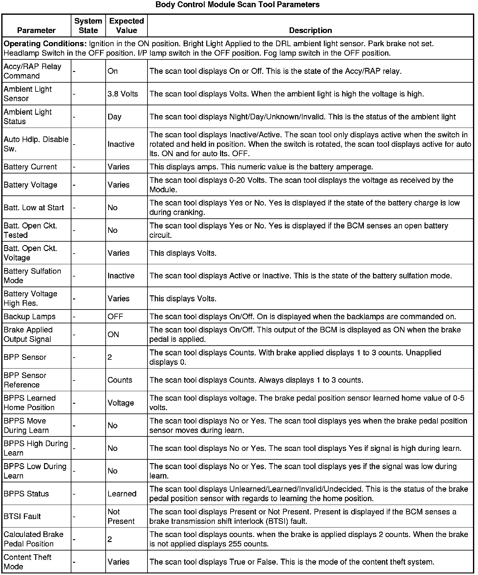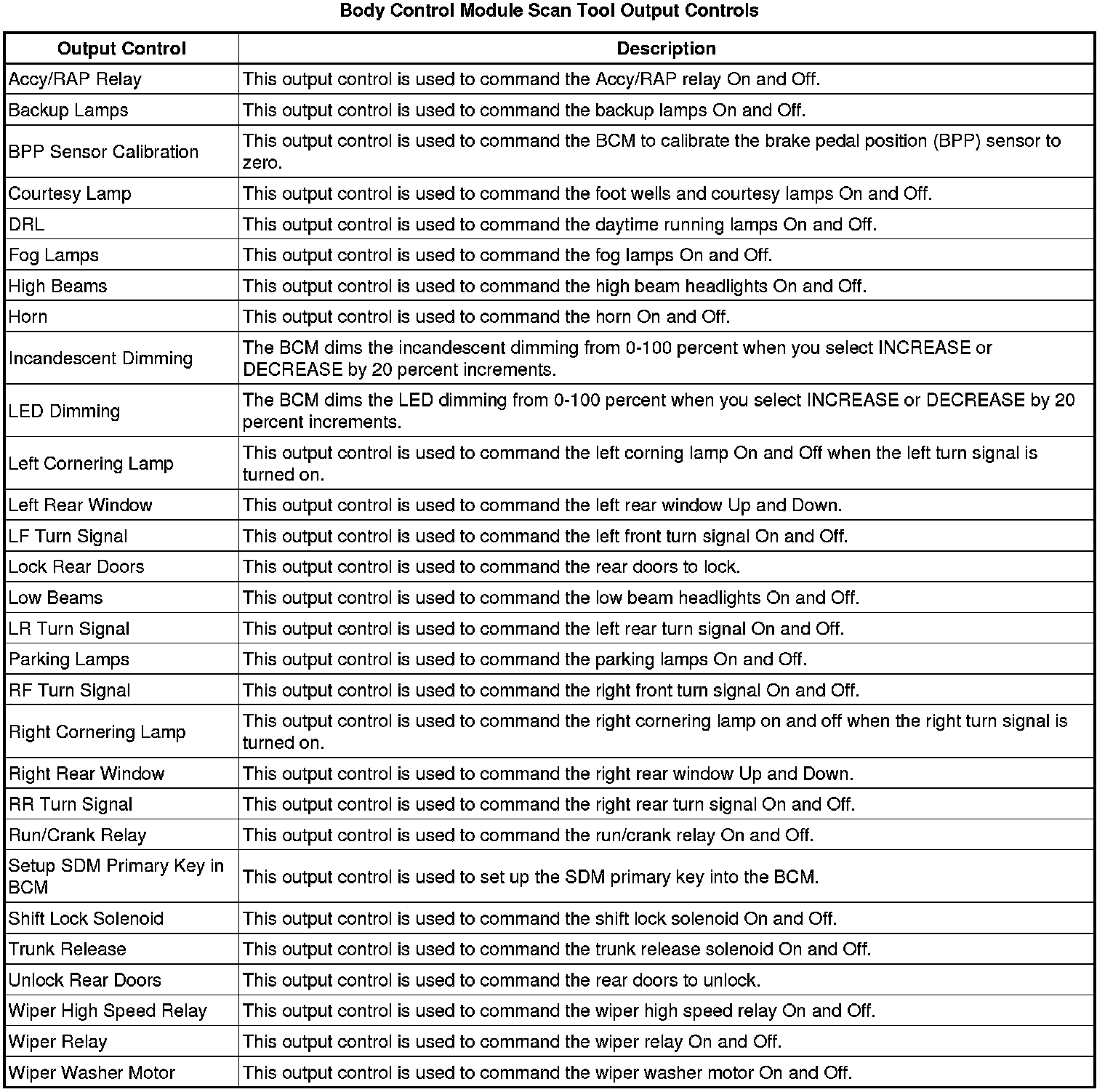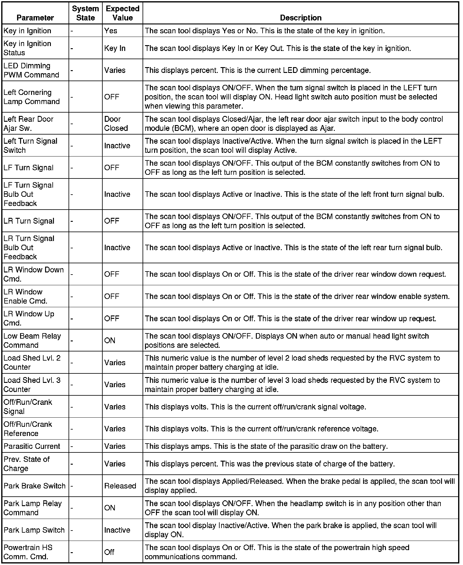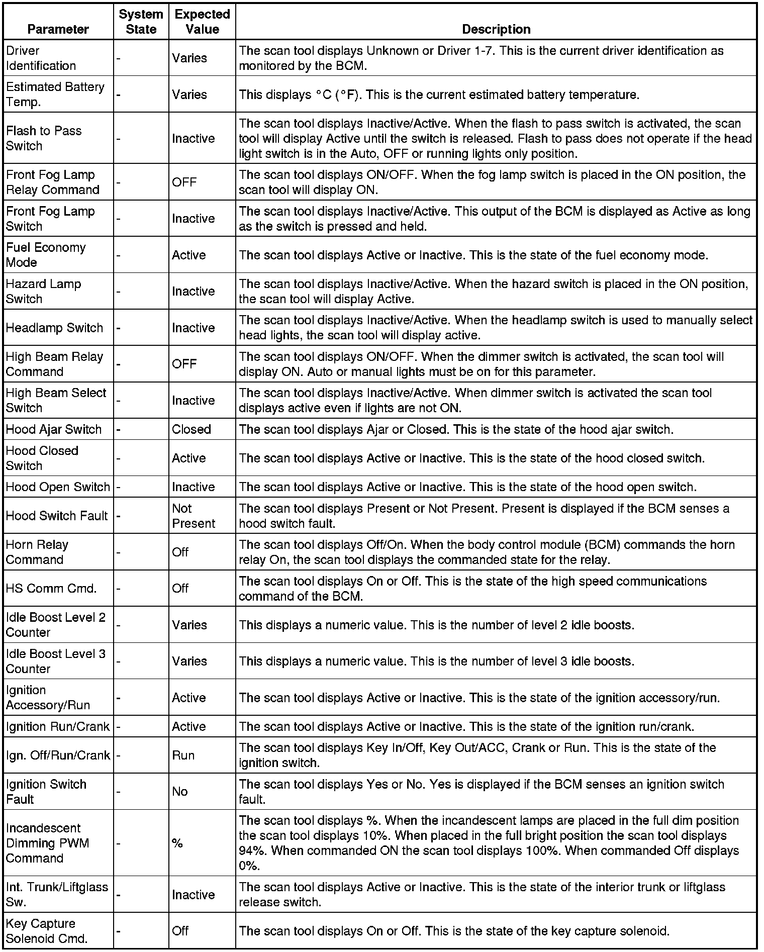 Body Control Module Scan Tool Information