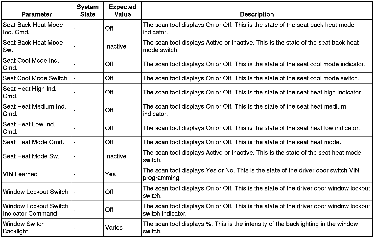 Door Lock Control Module Scan Tool Information (Driver