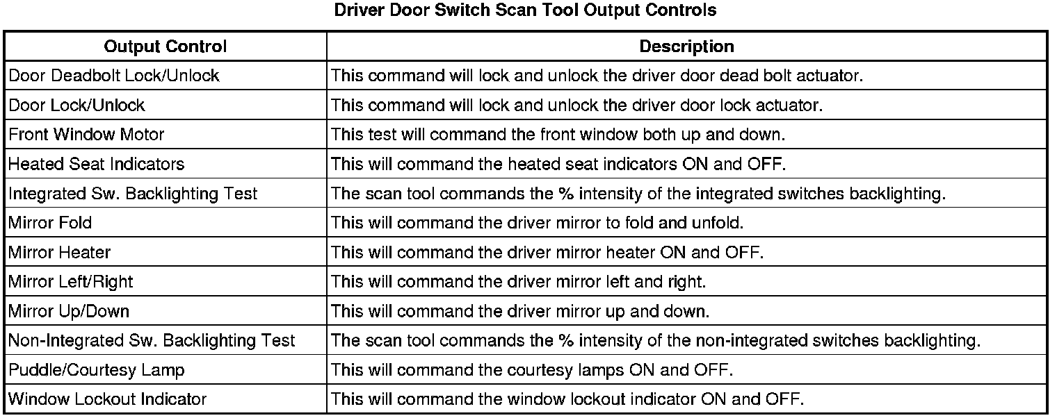 Door Lock Control Module Scan Tool Information (Driver Door Switch)