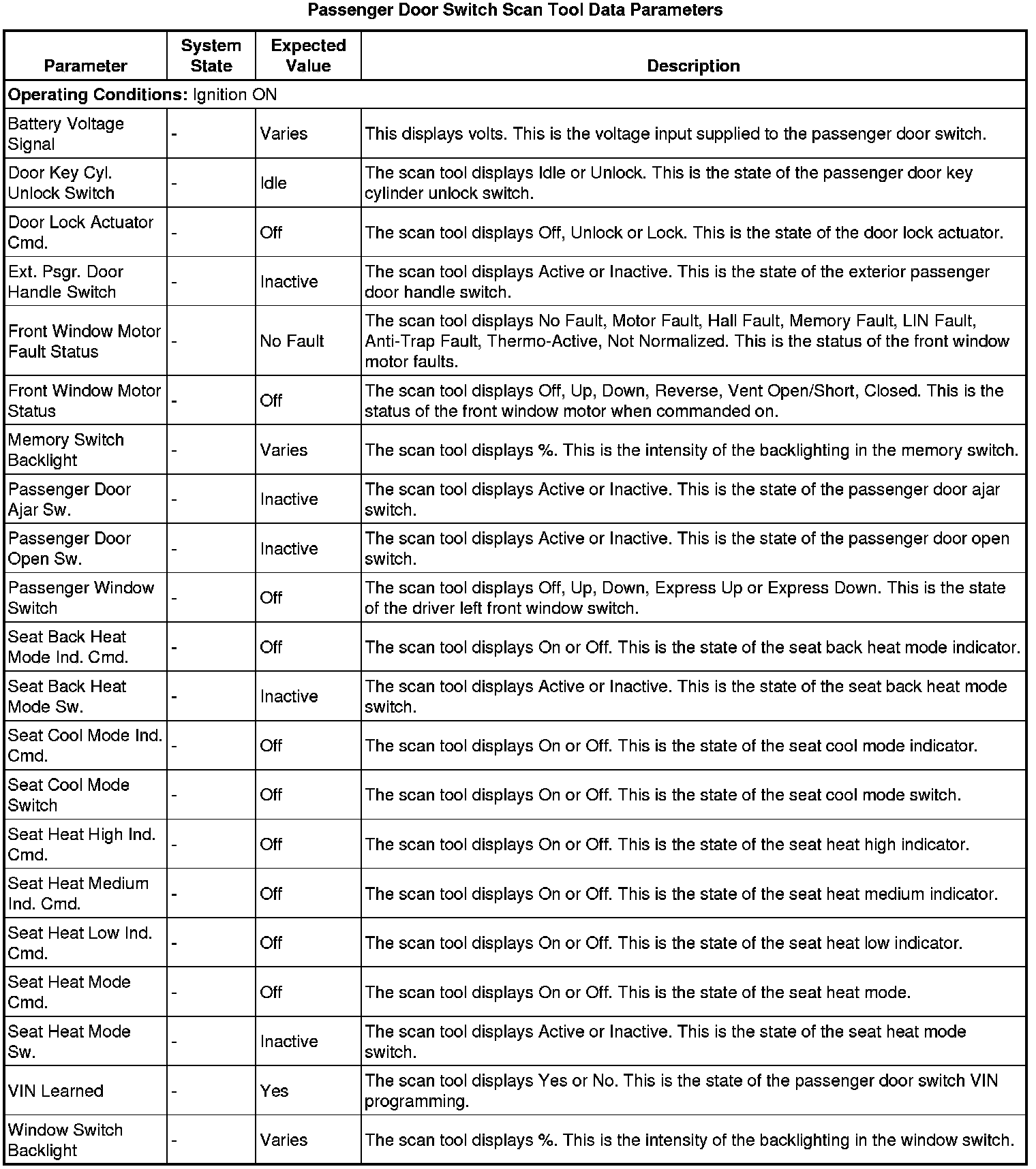 Door Lock Control Module Scan Tool Information (Passenger Door Switch)