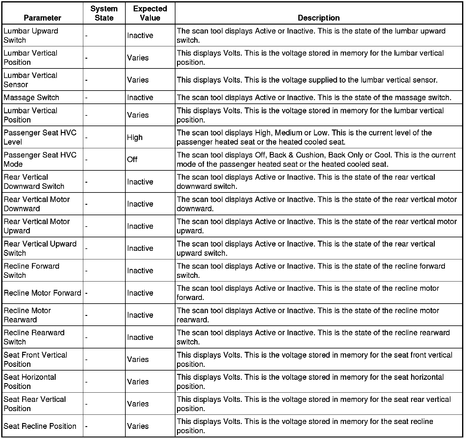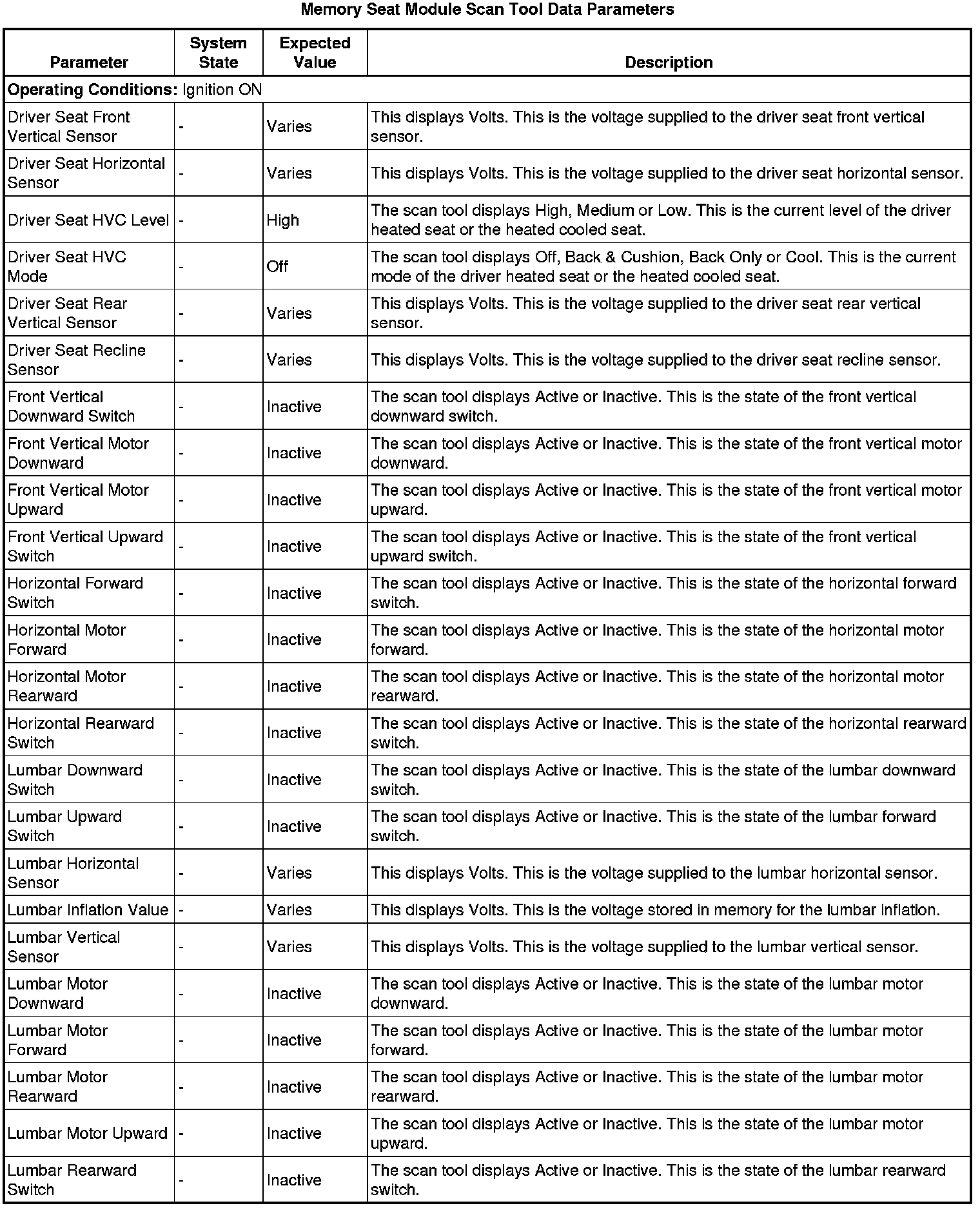 Driver Seat Adjuster Memory Module Scan Tool Information