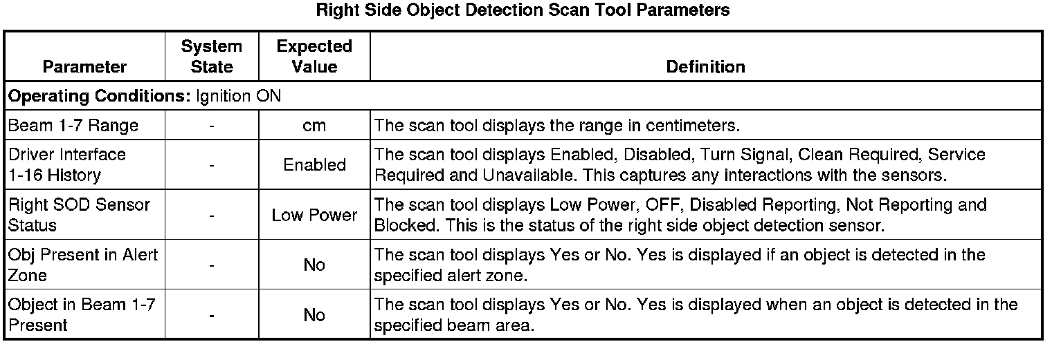Side Object Sensor Module Scan Tool Information (Right Side Object Detection Module)