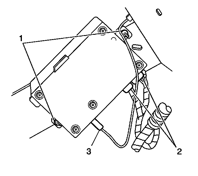 2. Disconnect the antenna (3) and electrical connections (2) from the vehicle communication interface module (VCIM).