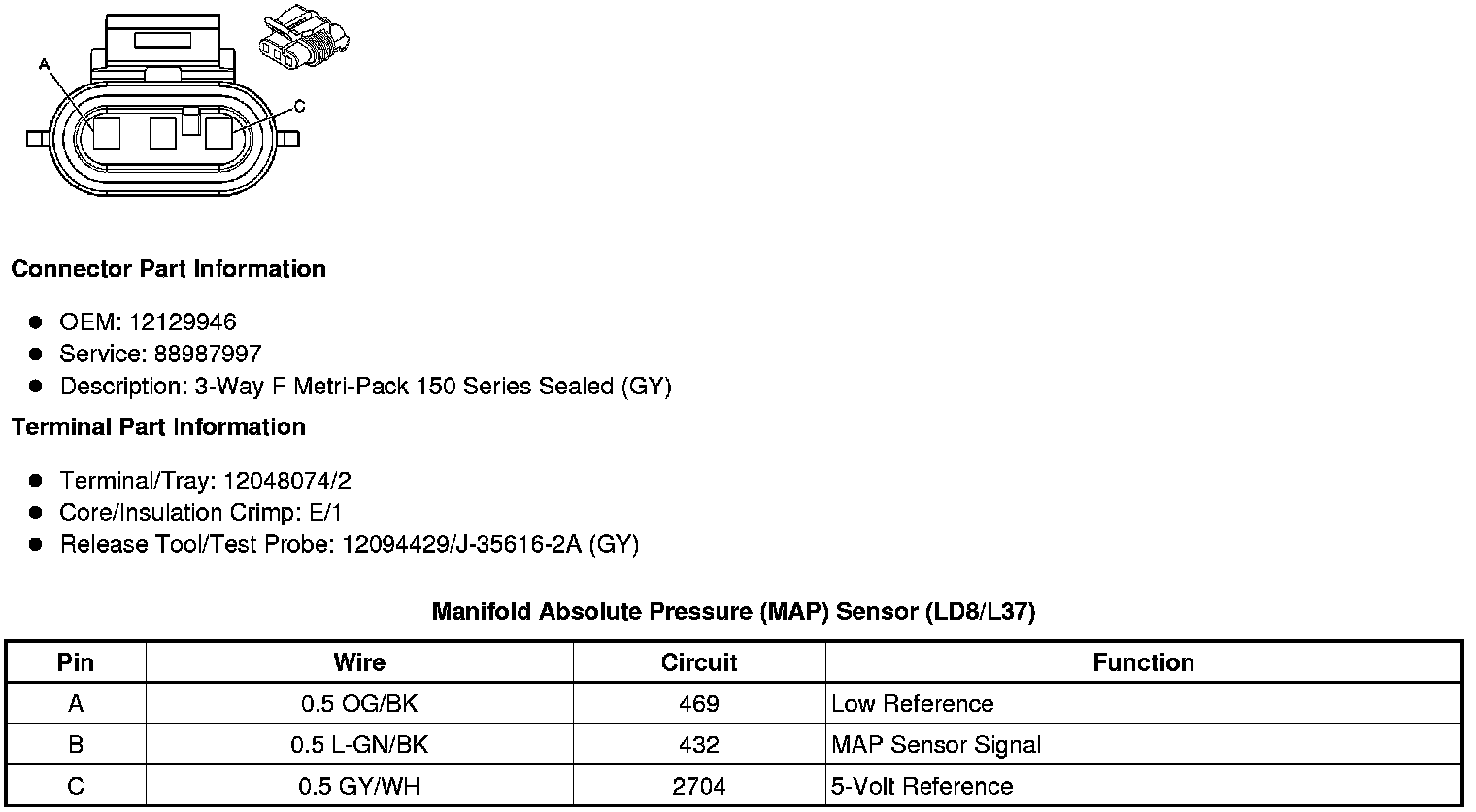 Manifold Absolute Pressure (MAP) Sensor (LD8/L37/4.6L)