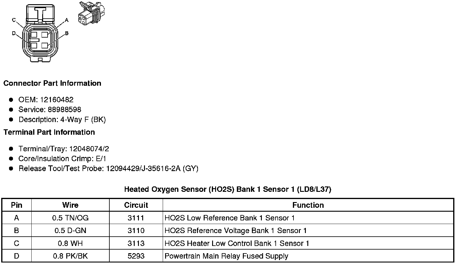 Heated Oxygen Sensor (HO2S) Bank 1 Sensor 1 (LD8/L37/4.6L)