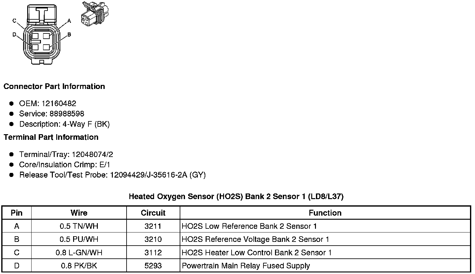 Heated Oxygen Sensor (HO2S) Bank 2 Sensor 1 (LD8/L37/4.6L)