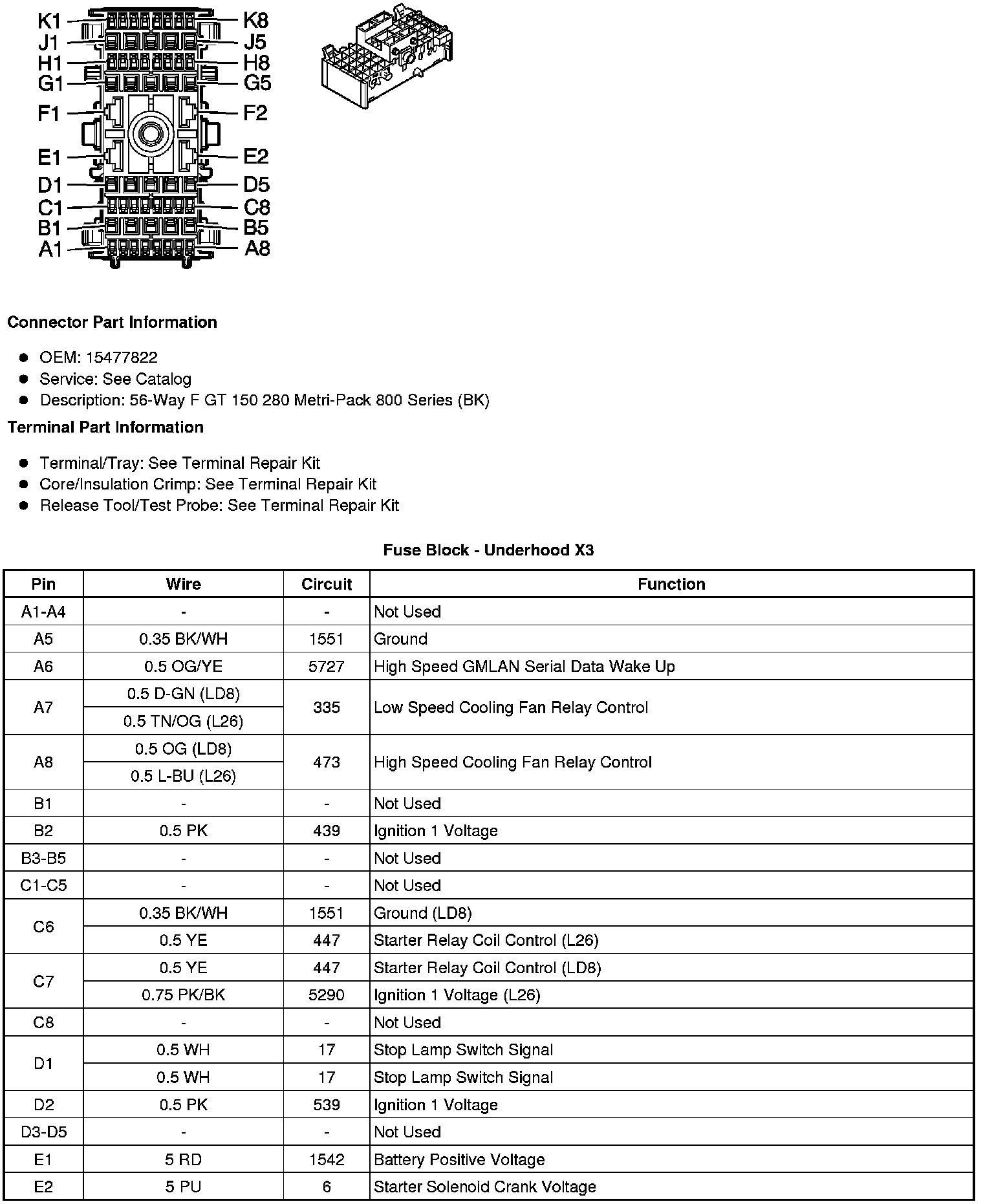 Fuse Block - Underhood X4 (To Starter/Generator)