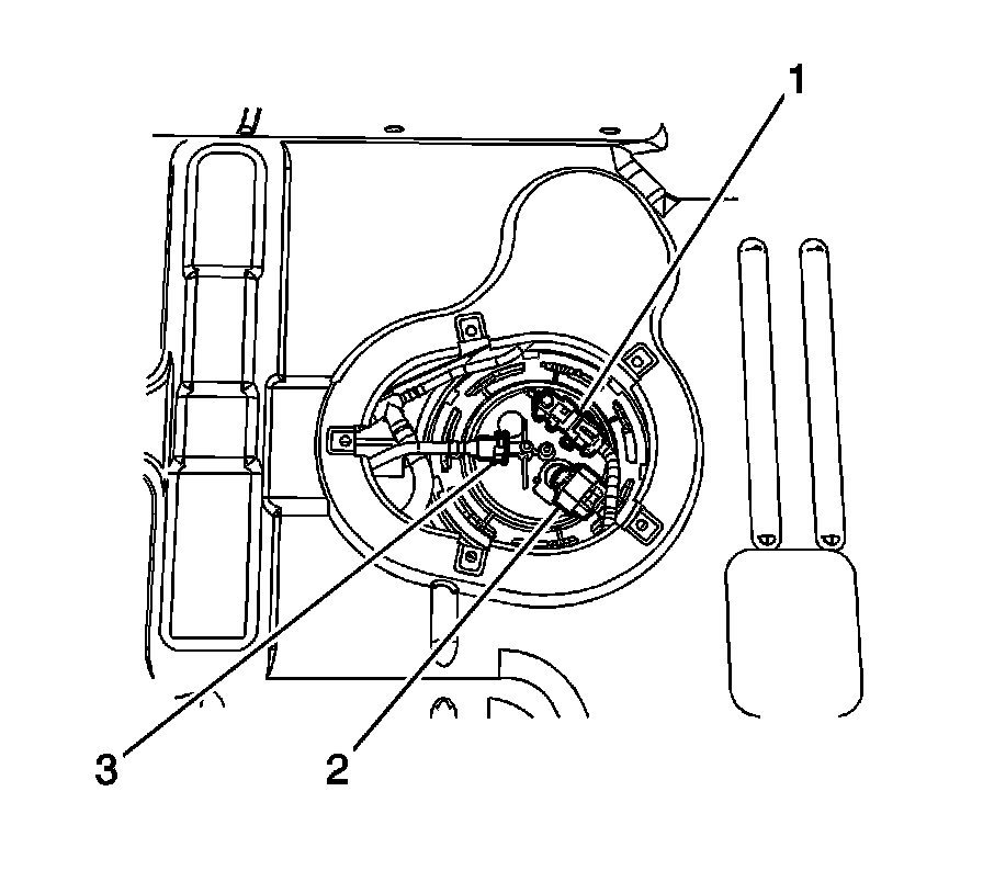 Important: When removing the module from the fuel tank, be aware that the module reservoir bucket is full of fuel. The module must be tipped slightly during removal to avoid bending the fuel level sensor float arm.
