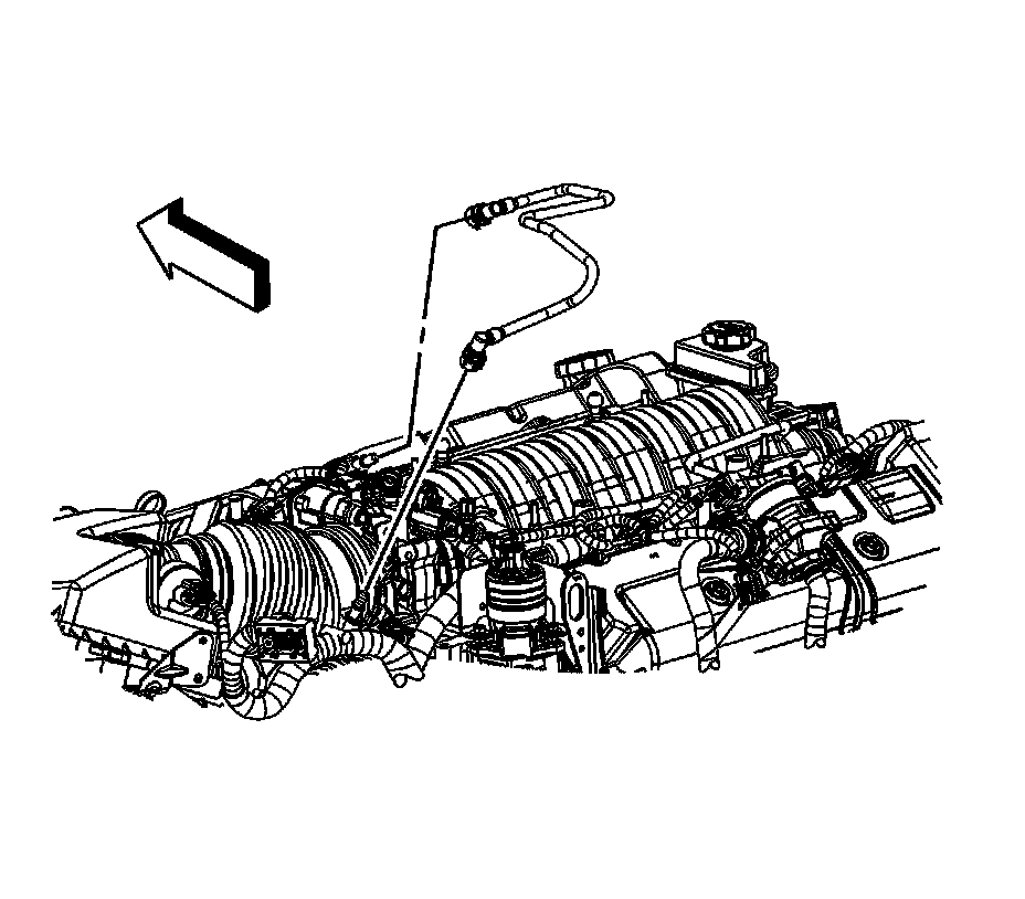 5. Disconnect the positive crankcase ventilation (PCV) fresh air tube quick connect fitting from the air duct. Refer to Plastic Collar Quick Connect Fitting Service (Plastic Collar Quick Connect Fitting Service).