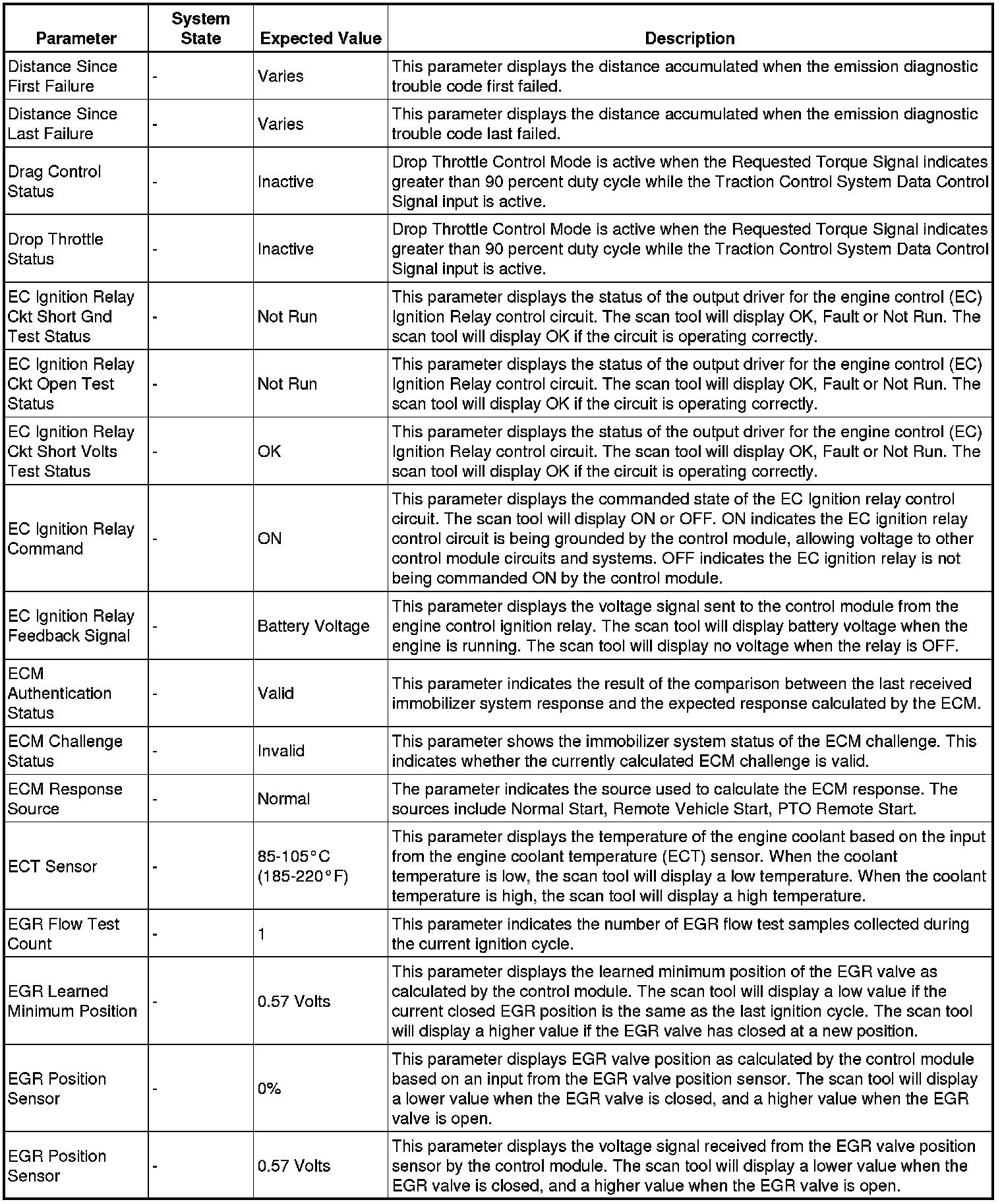 The Engine Control Module Scan Tool Data List contains all engine-related parameters that are available on the scan tool. The list is arranged in alphabetical order. A given parameter may appear in any one of the data lists, and in some cases may appear more than once, or in more than one data list in order to group certain related parameters together.