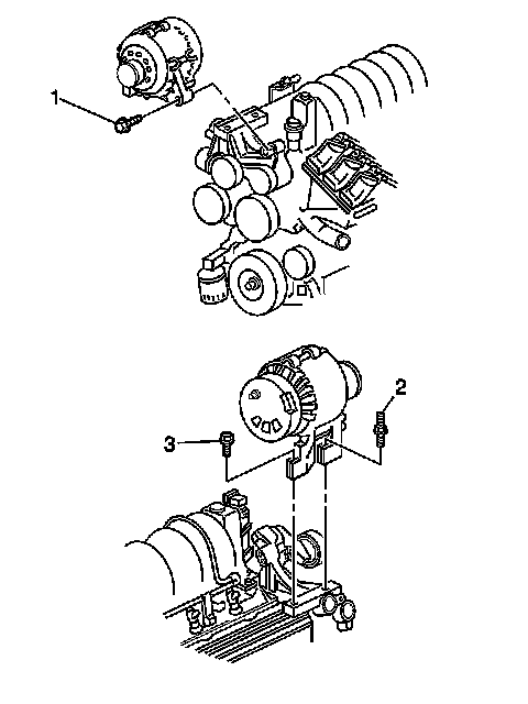 7. Install the generator bolts (1, 3) to the generator bracket.