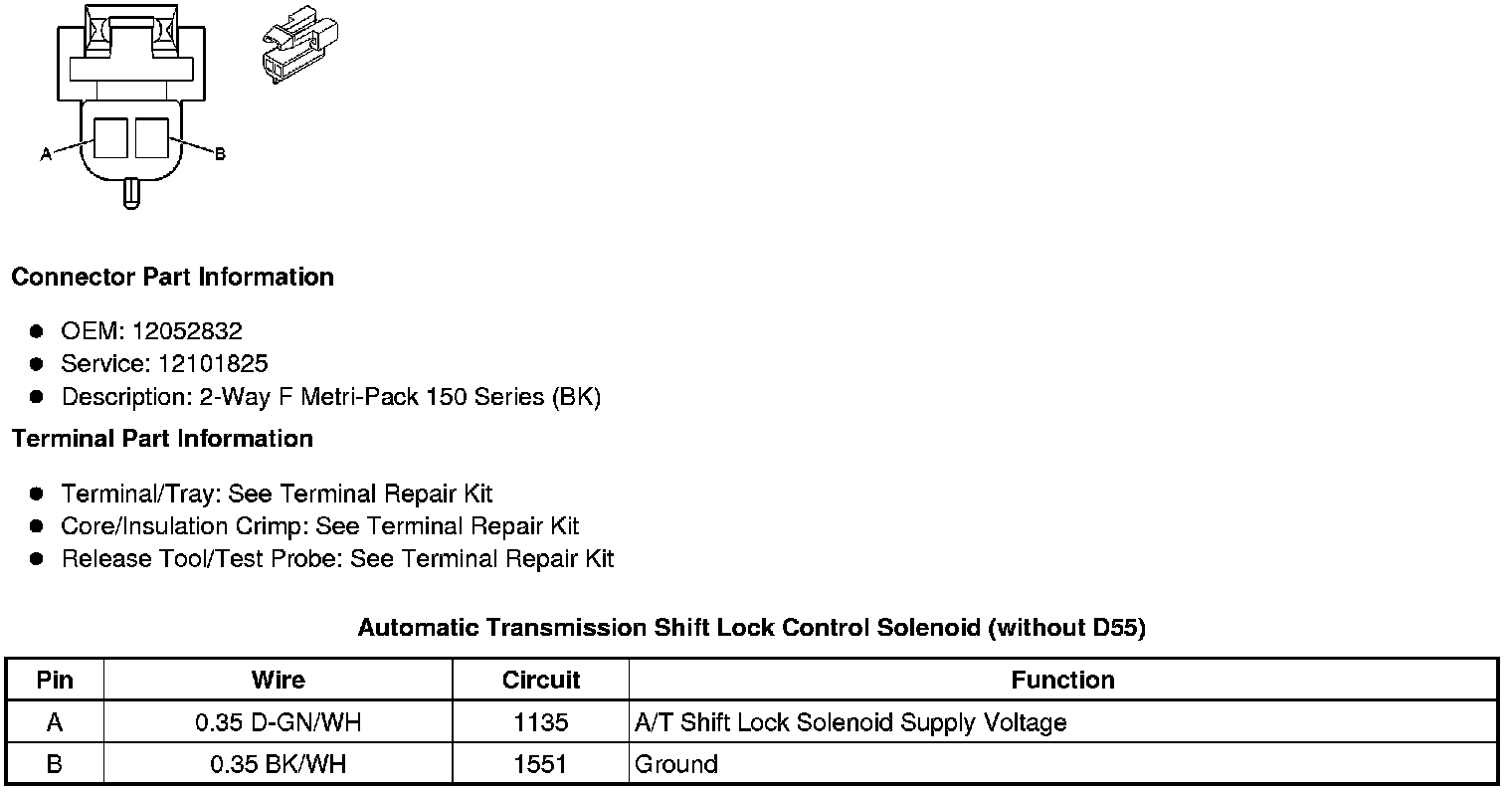 Automatic Transmission Shift Lock Control Solenoid (without D55)