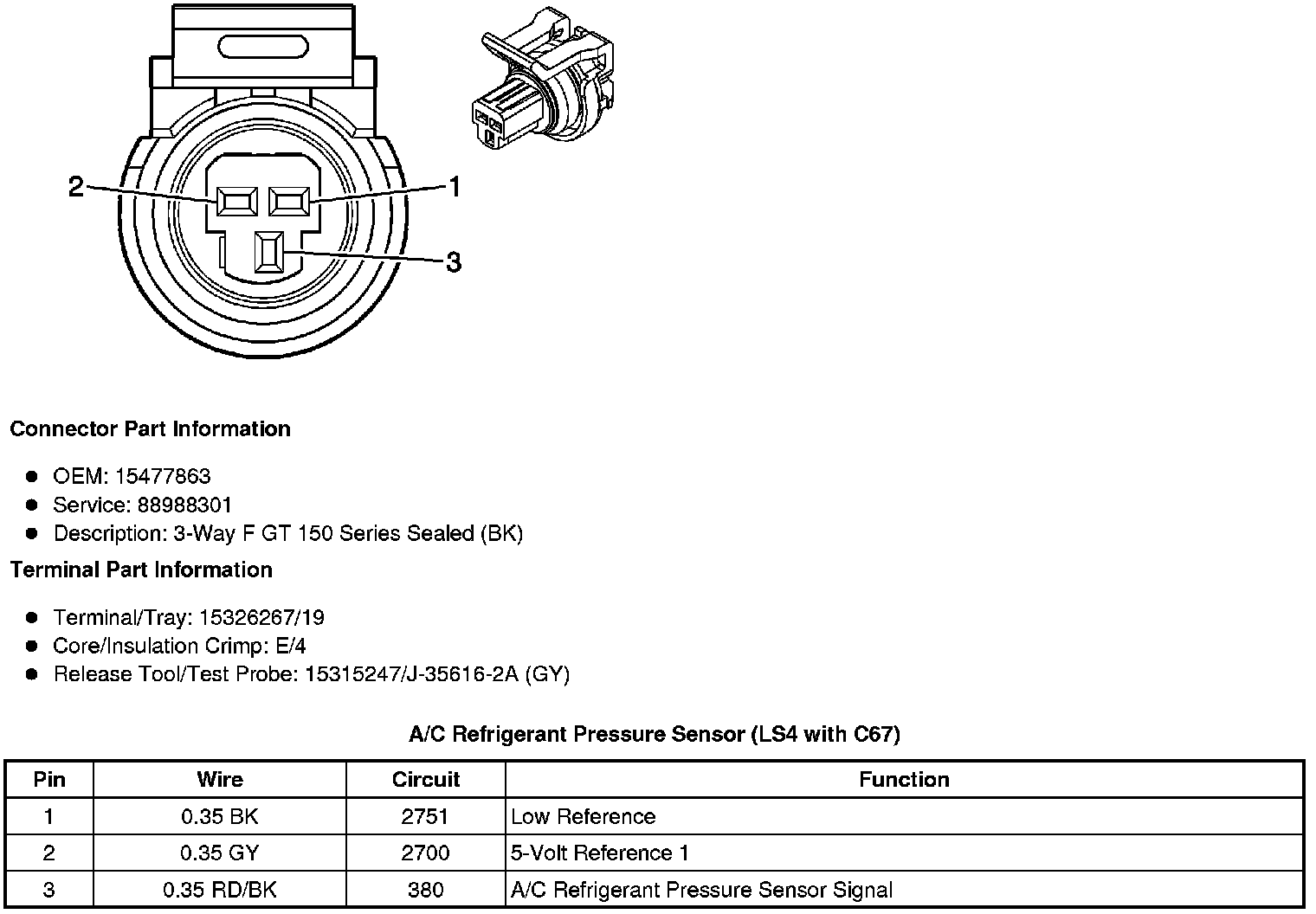 A/C Refrigerant Pressure Sensor (LS4 with C67)