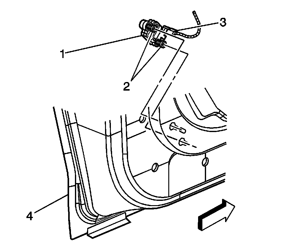 7. Remove the connector position assurance (CPA) (3) from the side impact sensor connector (4).