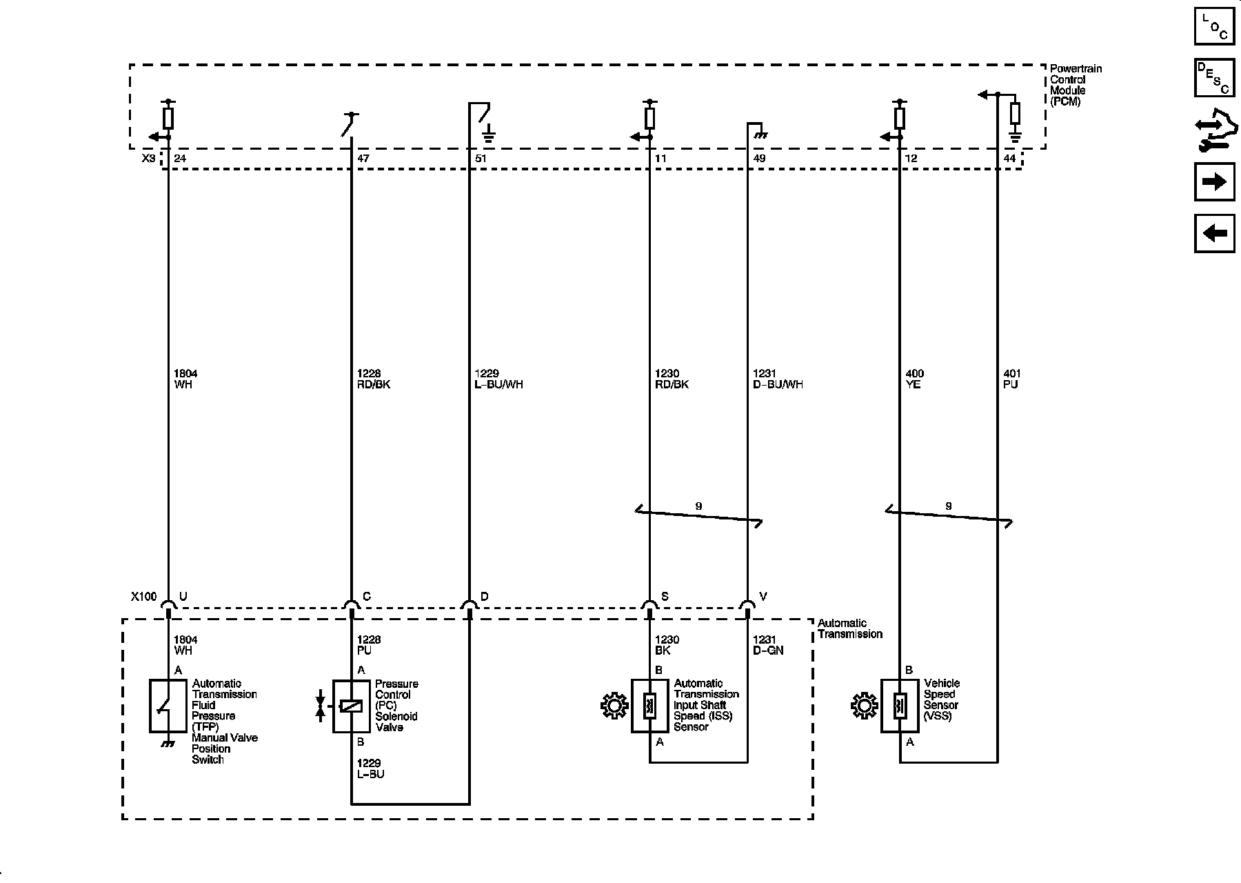PC Solenoid Valve, Fluid Pressure Manual Valve Position Switch, ISS and VSS Sensors (LS4)