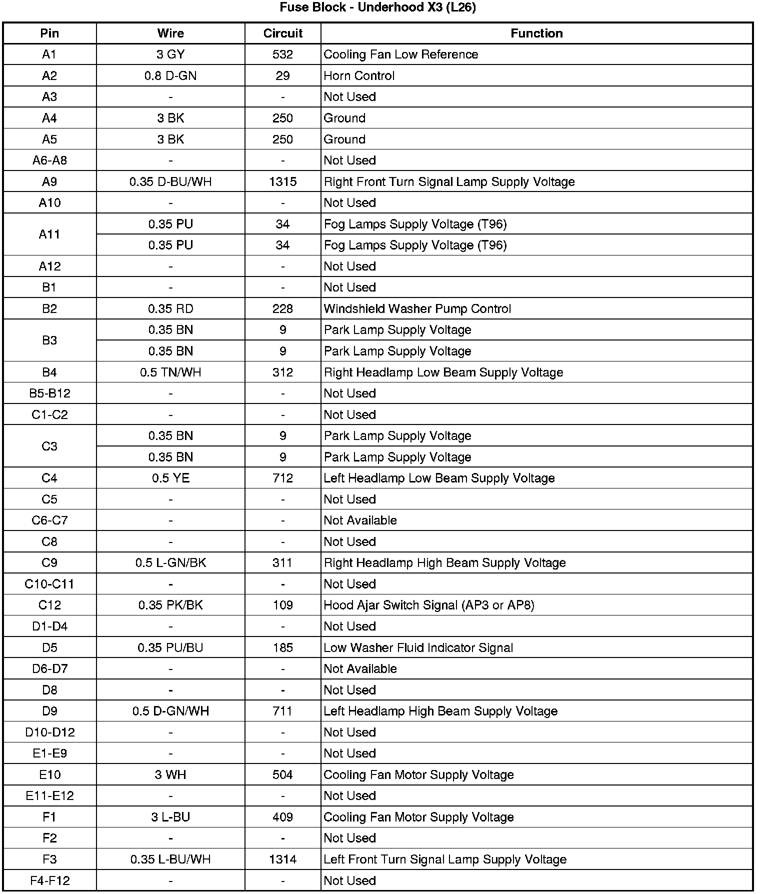 Fuse Block - Underhood Bottom View (L26)