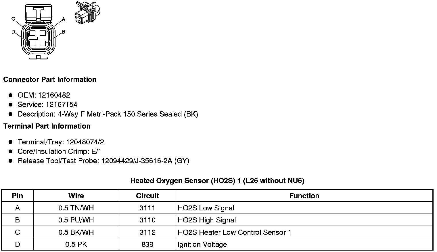Heated Oxygen Sensor (HO2S) 1 (L26 with NU6)