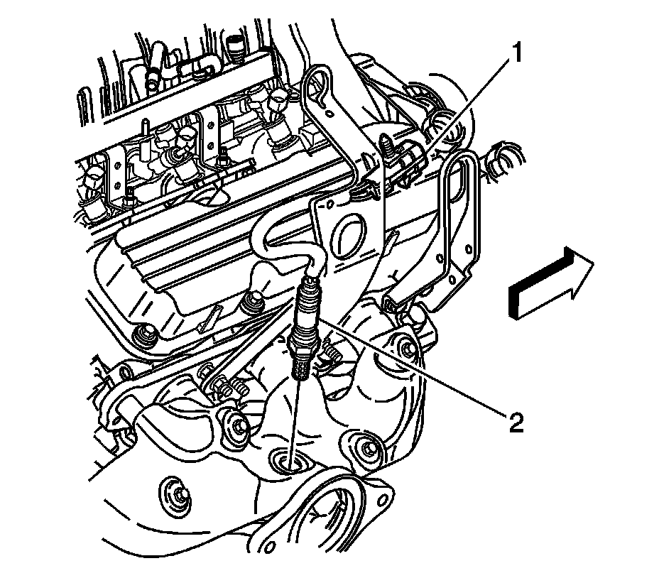 1. Install the HO2S (2) to the right exhaust manifold.
