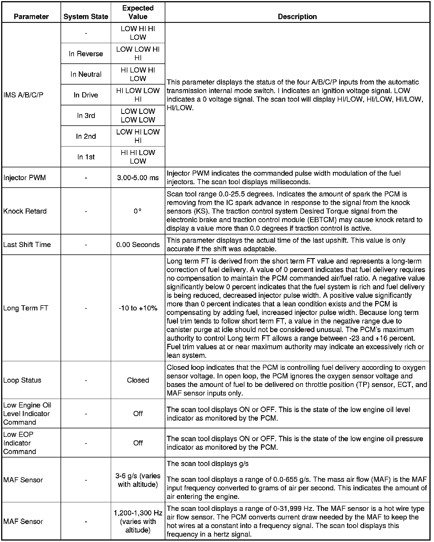 The scan tool values from a properly running engine may be used for comparison with the engine you are diagnosing. The Engine Scan Tool Data List represents values that would be seen on a normally running engine.
