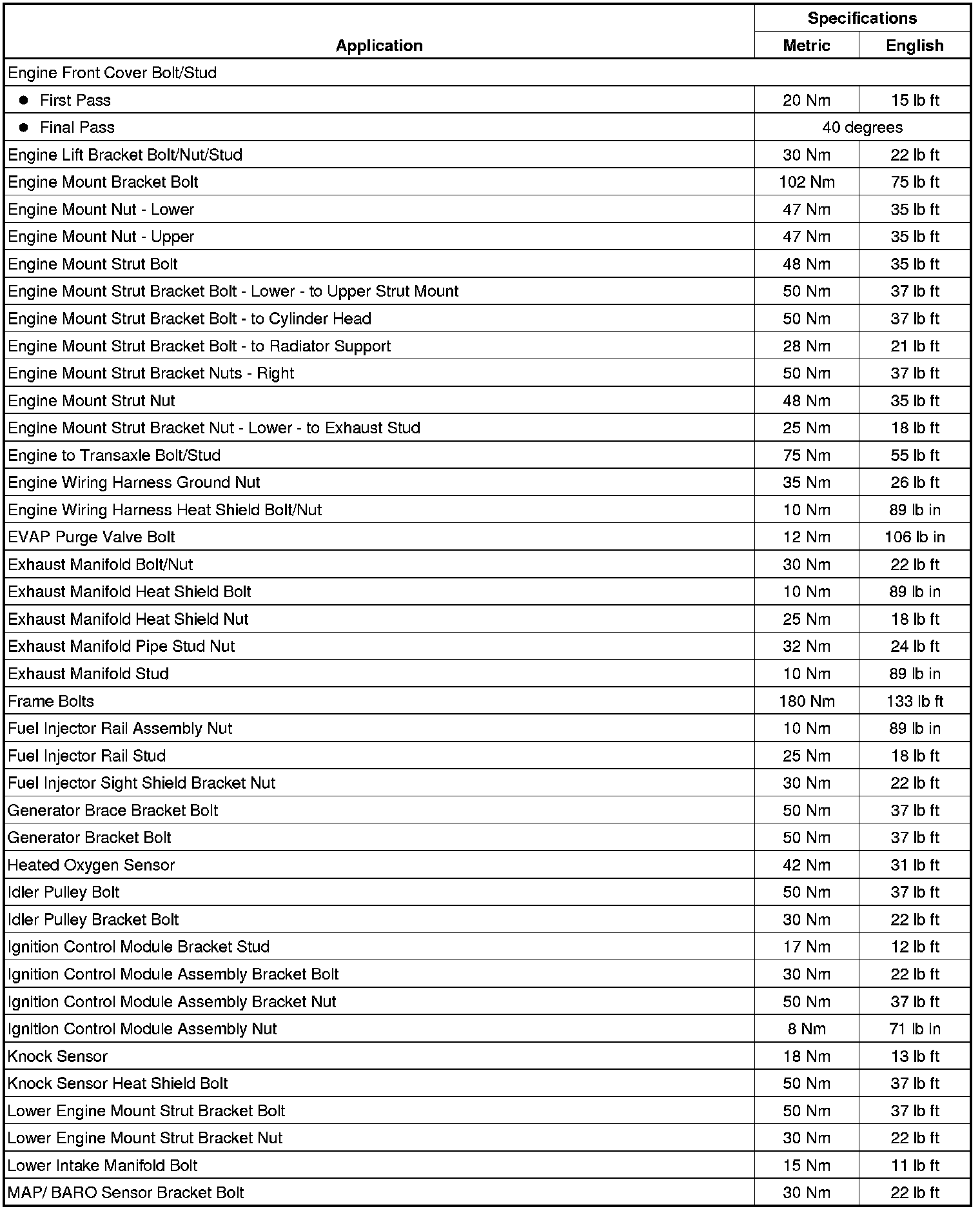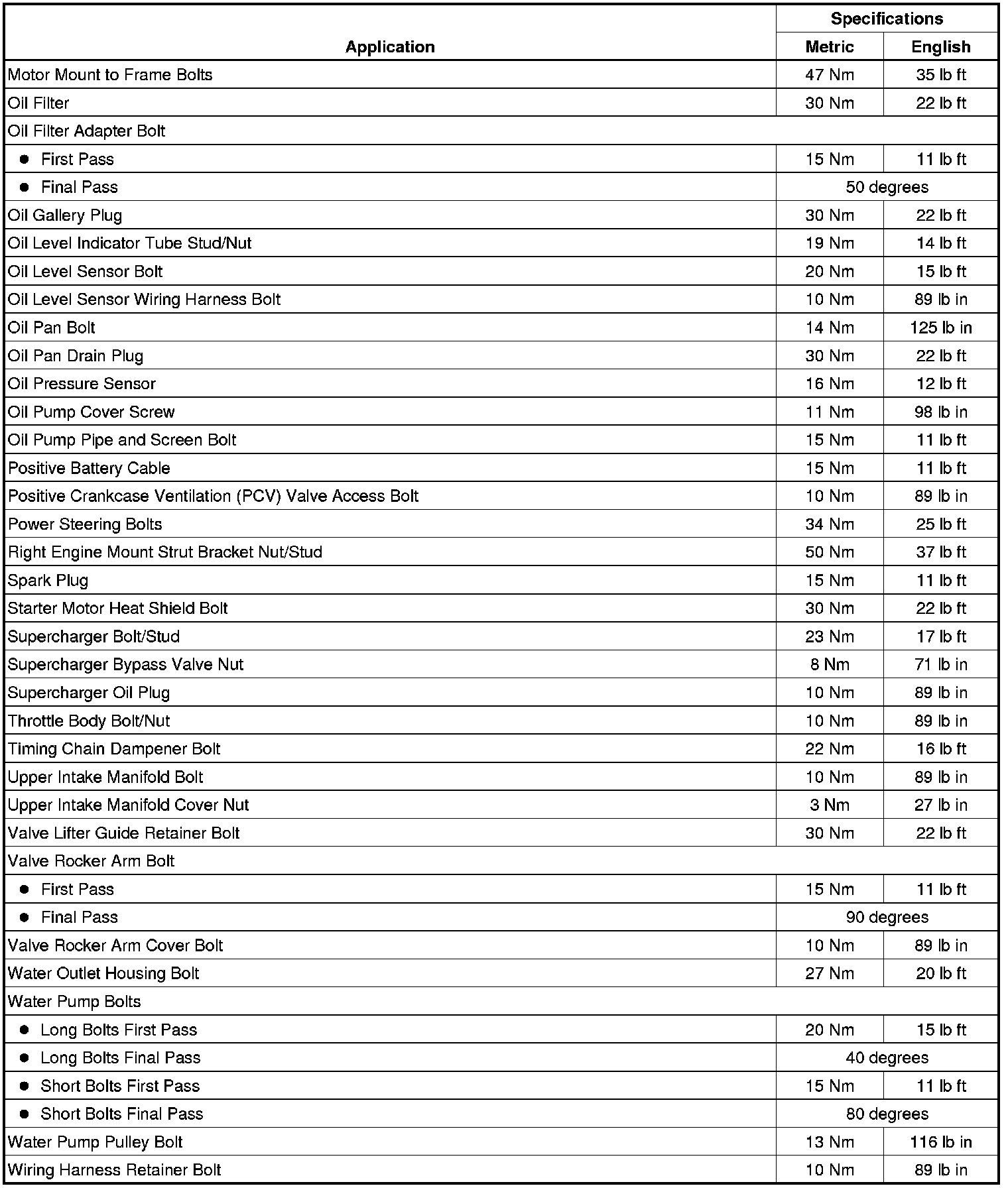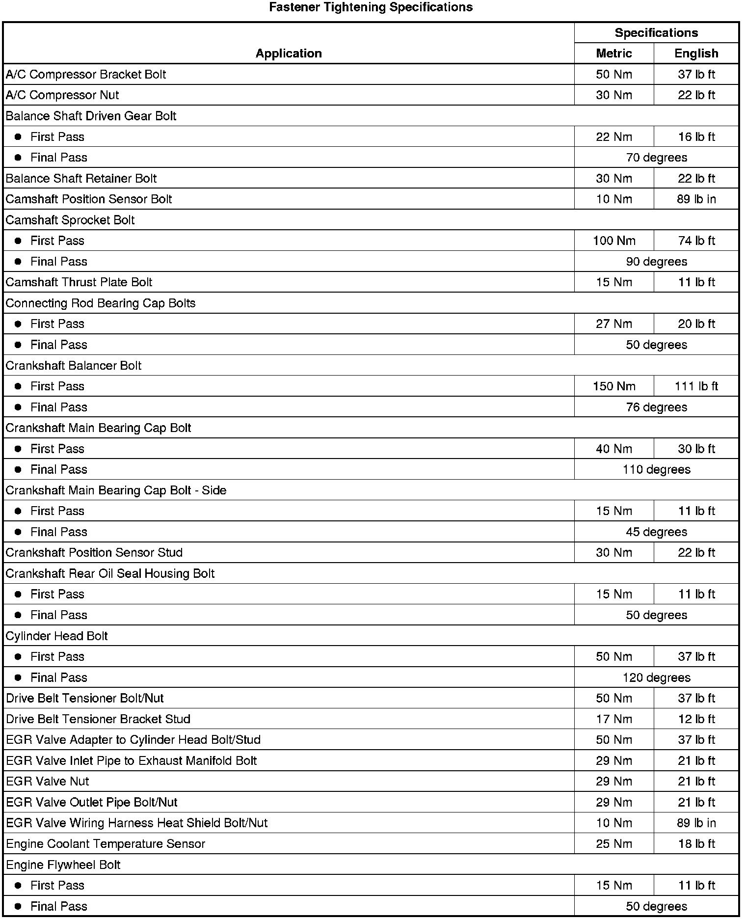 Fastener Tightening Specifications